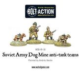 Soviet Army Dog Mine anti-tank teams2 metal foot figures and 2 metal dogs. Note: Models supplied unassembled and unpainted. Please note heads may vary from those shown in the picture.