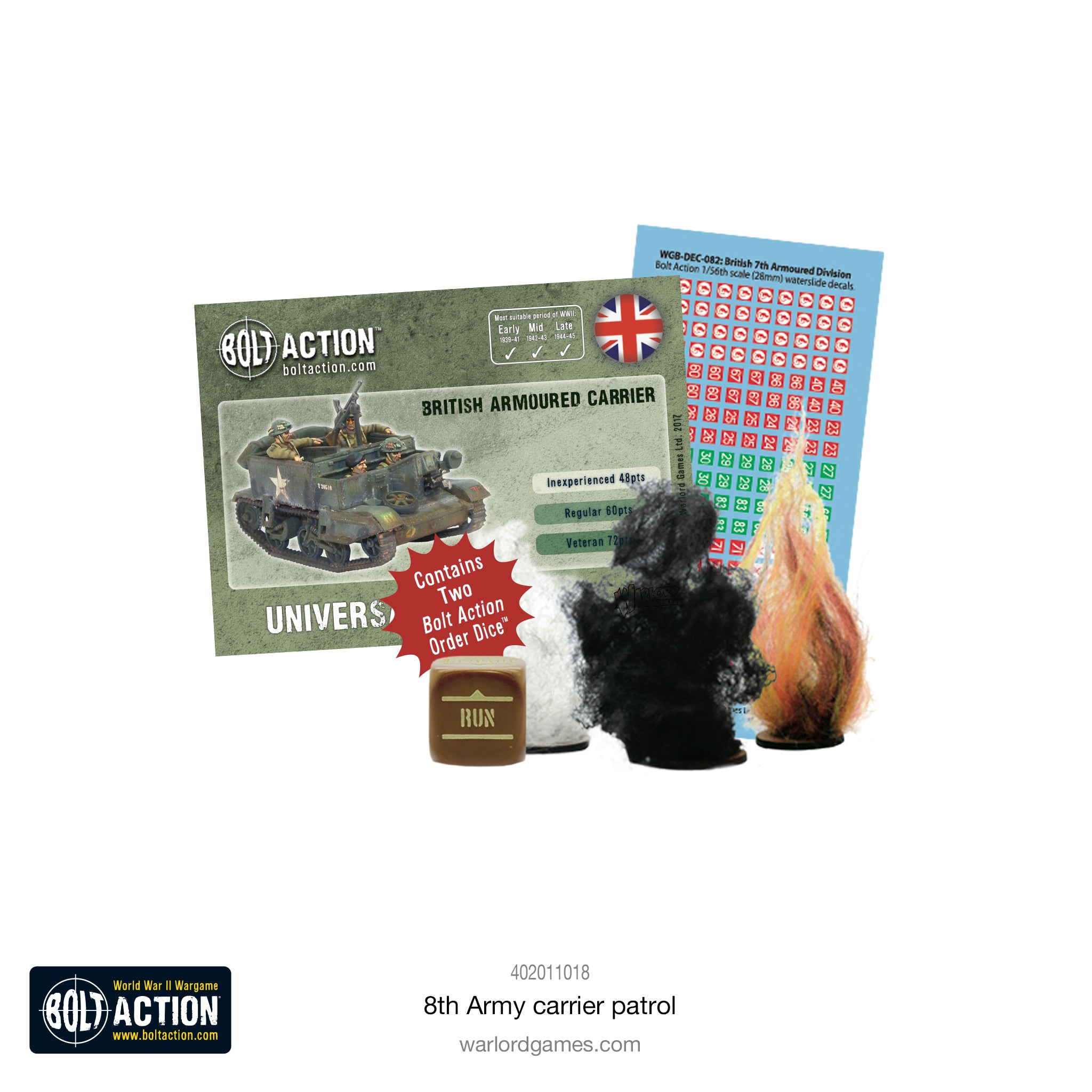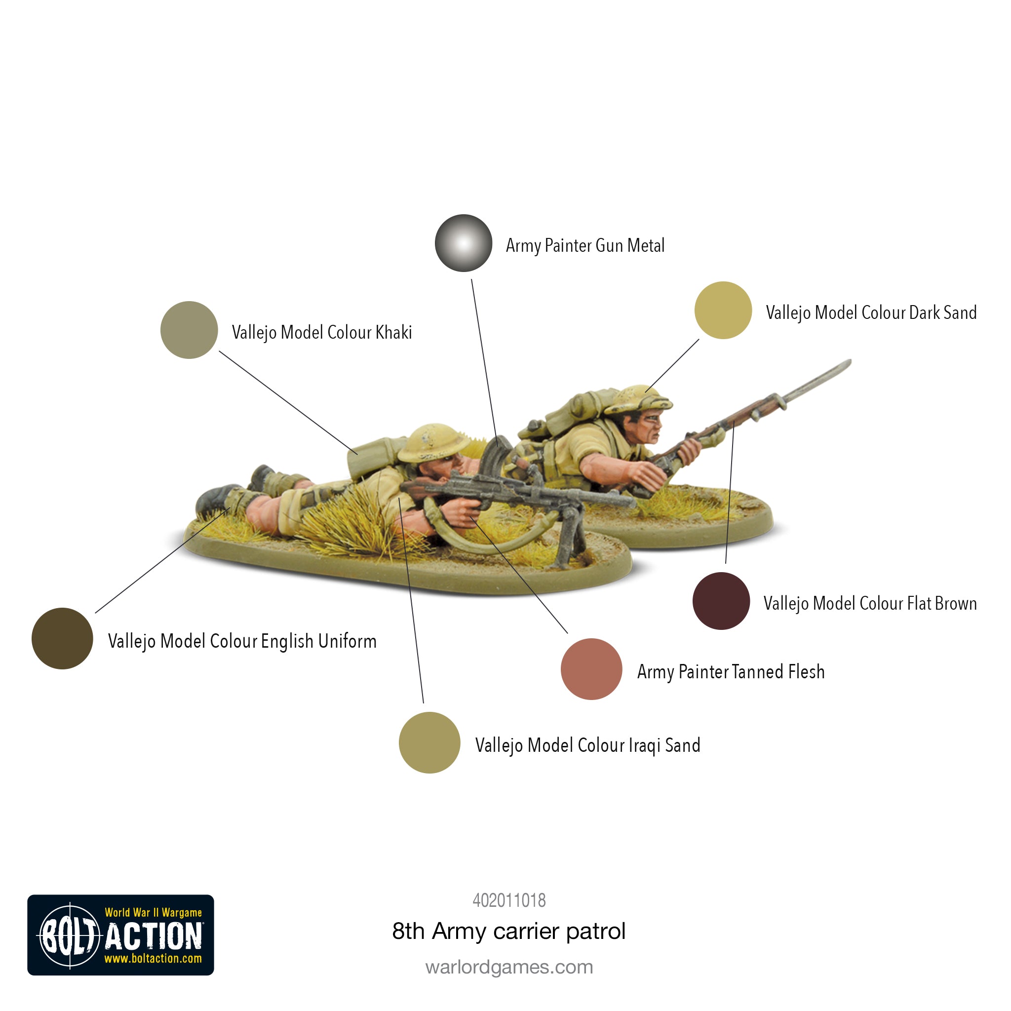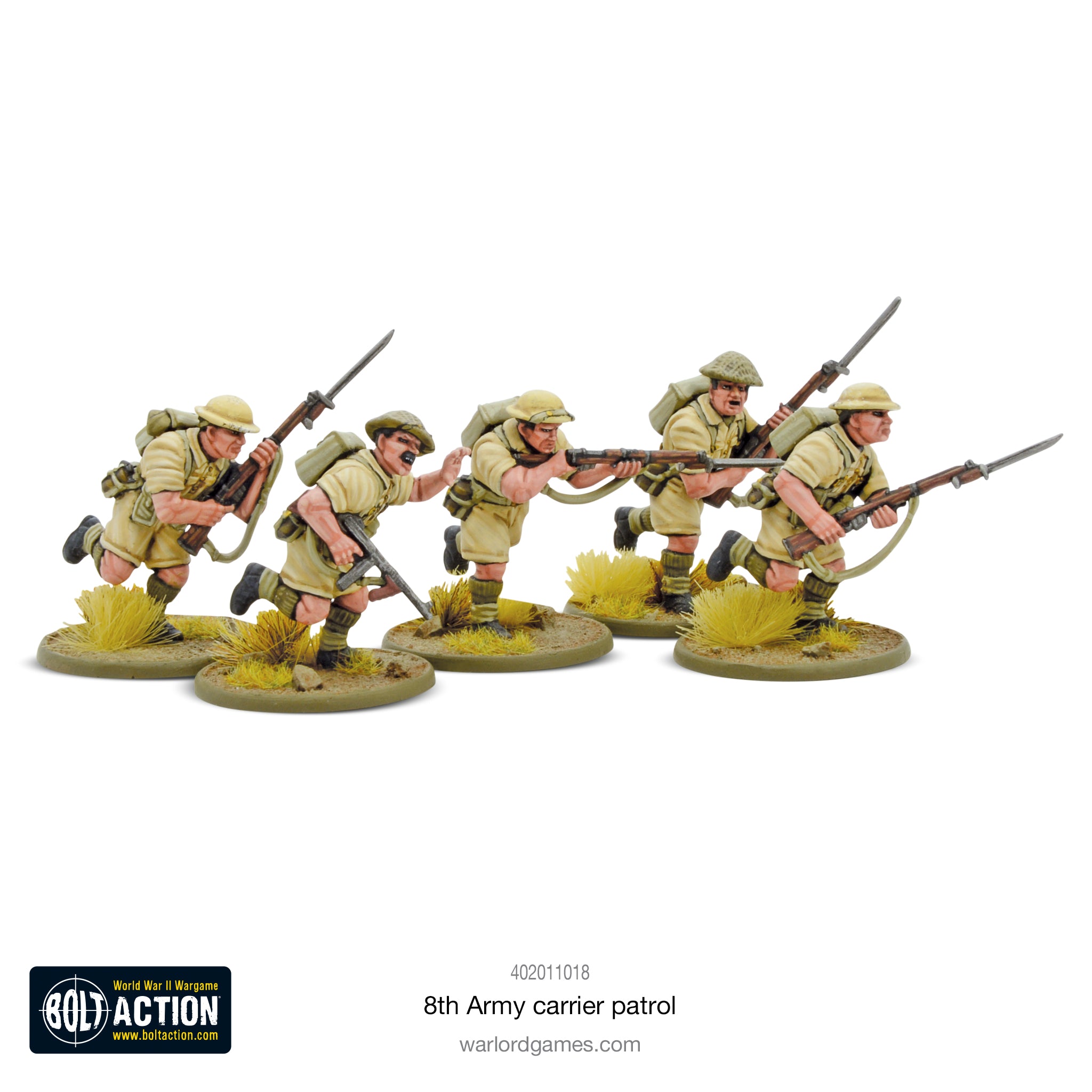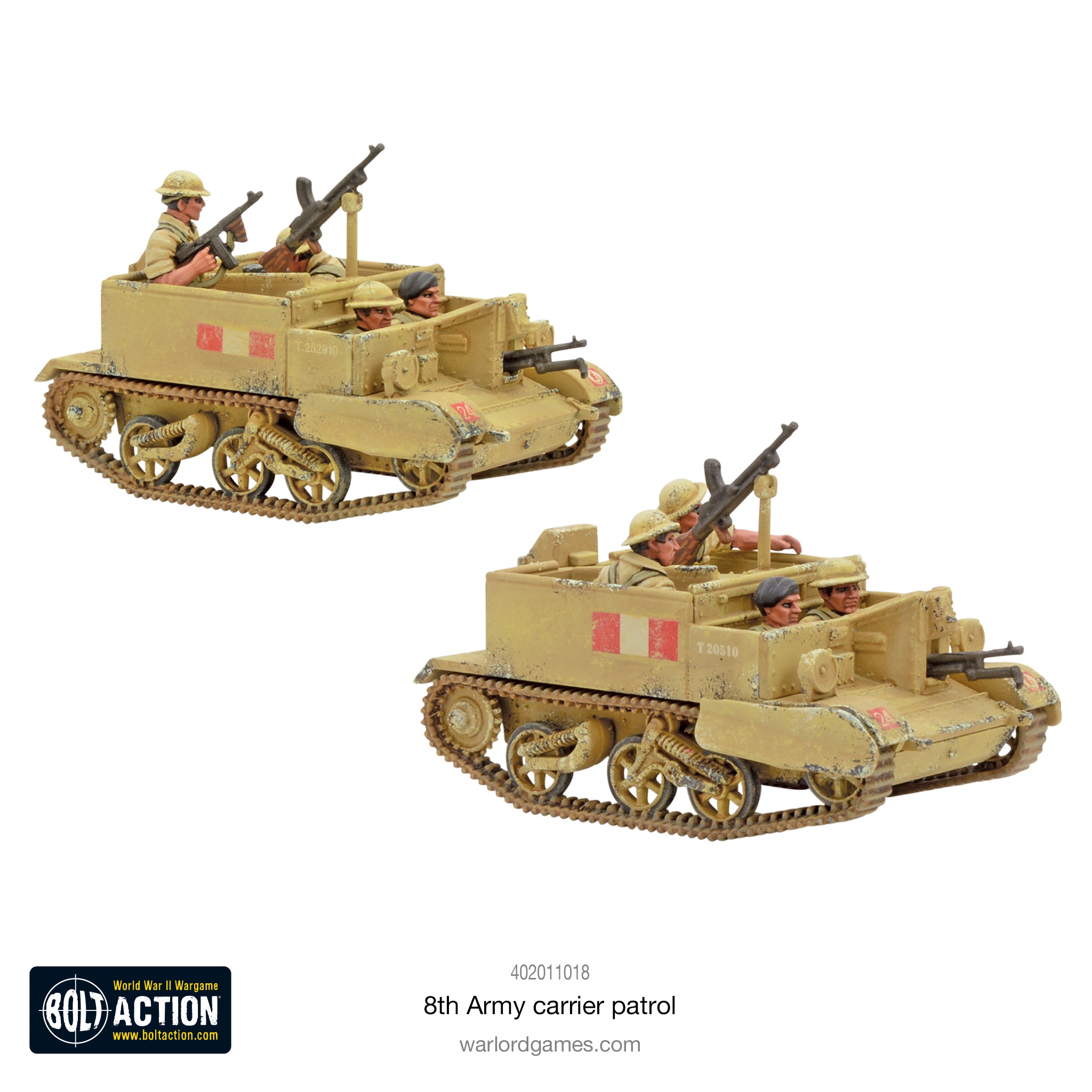 The vast open expanses of the western desert made for a war of manoeuvre and out-manoeuvre where reconnaissance was paramount. Scouting patrols were vital to the success of operations - these two universal carriers packed with brave 8th Army infantry are just the thing to show Jerry they can't have it all their own way!