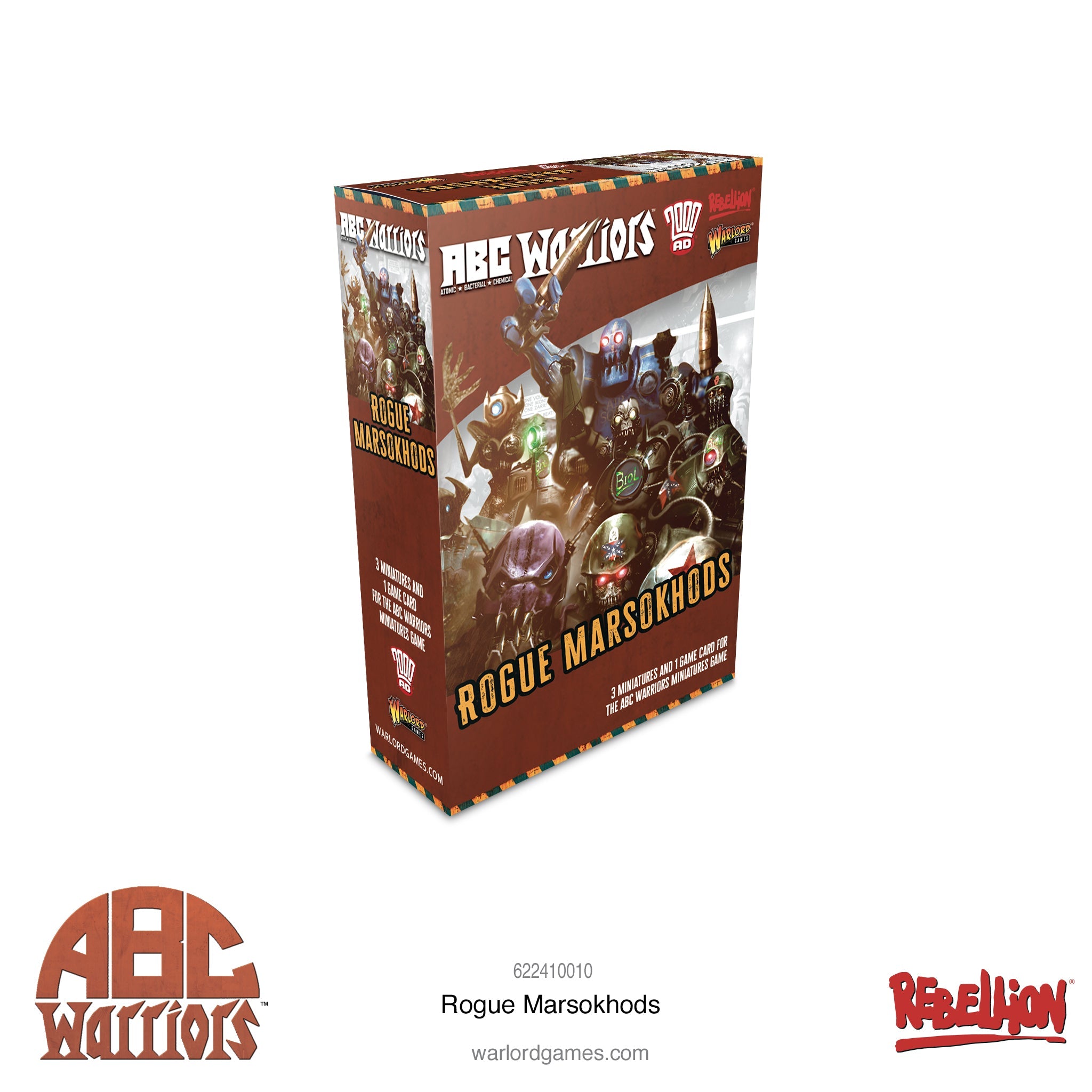 Contains three Warlord Resin ABC Warriors miniatures with plastic bases and game cards.