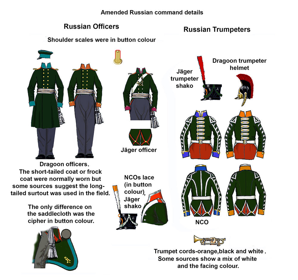This set allows you to build not only Prussian and Russian Dragoon but also Russian Mounted Jäger regiments plus detachments of Prussian Mounted Volunteer Jäger. The Prussian regiments can be represented in either Kollet or in the campaign Litewka. There are a large variety of options for poses; charging/ attacking as well as shouldered swords for all.