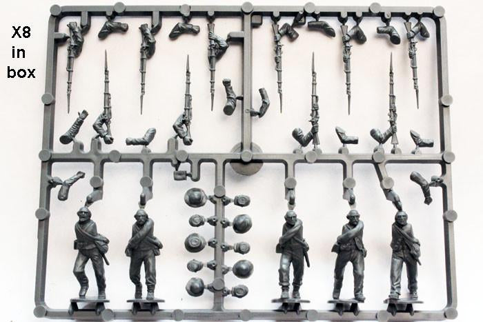 The figures in this box represent a Confederate infantry regiment form 1862 onwards although there are a fair amount of units that can be depicted from 1861 too. They are all represented in short jackets typical of the entire Confederate Army from mid-1863. Both caps and broad-brimmed hats are included for all figures as some regiments adopted the hat and others the cap, although most had a mix. All figures have separate arms to allow you build the regiment at right shoulder shift or at the charge.