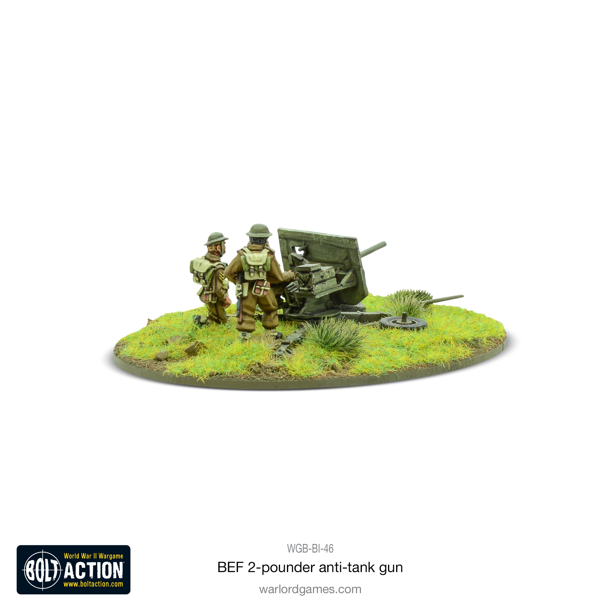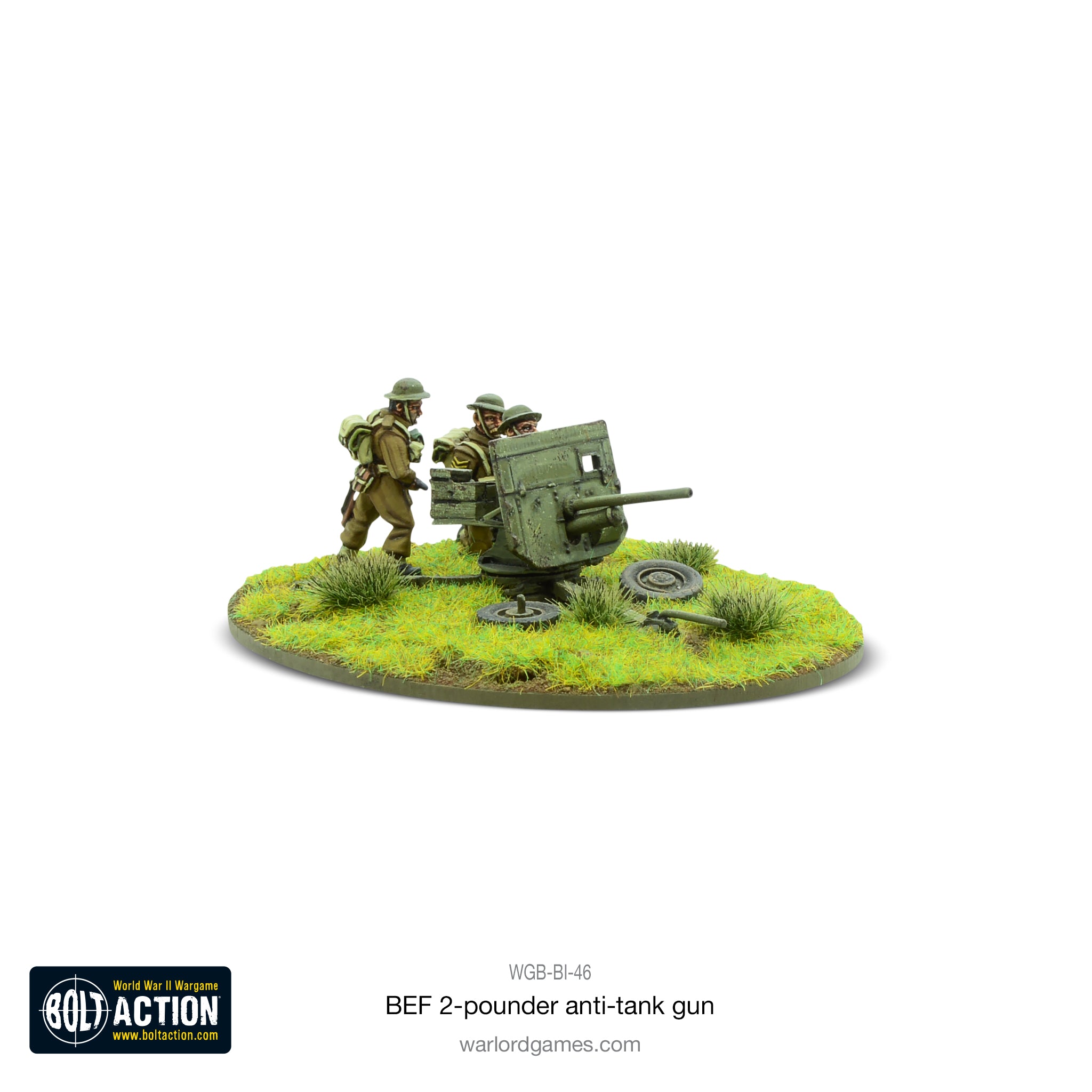 An Early War British 2 pounder Anti-Tank Gun with three crew.