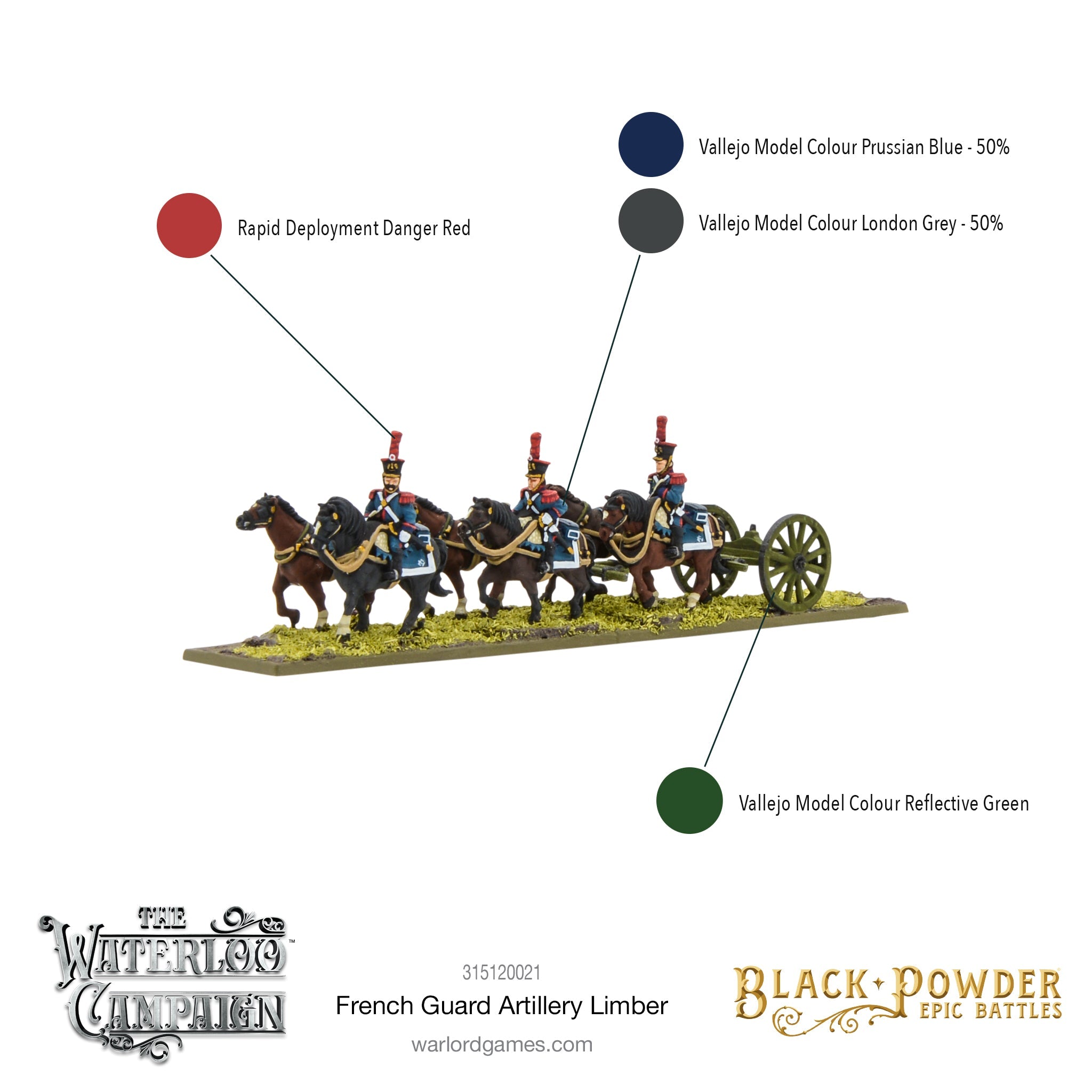 Contains one Napoleonic French Guard Artillery Limber (Warlord Resin) and plastic bases.