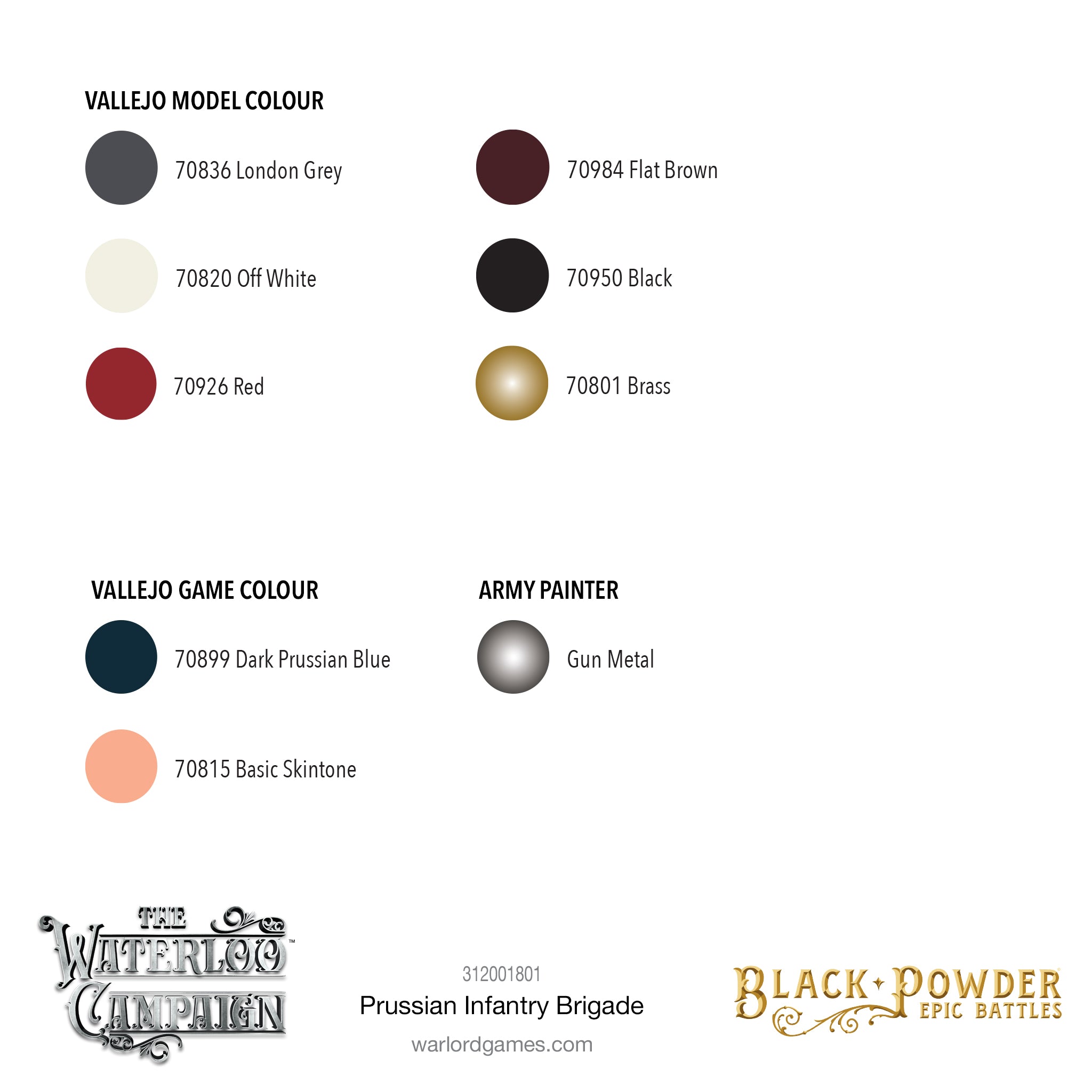 Smartly dressed in sombre dark uniforms the ranked columns of Prussian infantry marched steadily to face Napoleon. Even after suffering a bitter defeat Ligny, in the midst of retreat, the disciplined professional soldiers were still able to muster their resolve and turn to England's aid, falling on Napoleon's flank at the pivotal moment during the Battle of Waterloo.