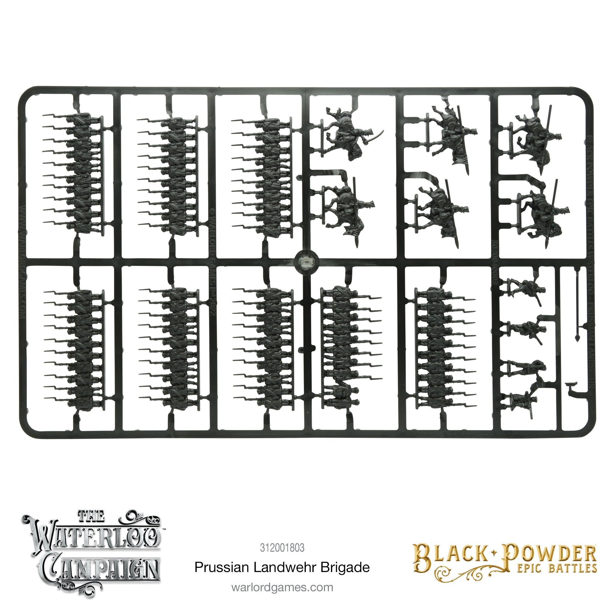 This plastic set provides enough models to field a complete brigade of three Prussian Landwehr regiments of 80 men each, 1 regiment of Landwehr cavalry, consisting of three bases of cavalry, and a unit of skirmishing Jägers.