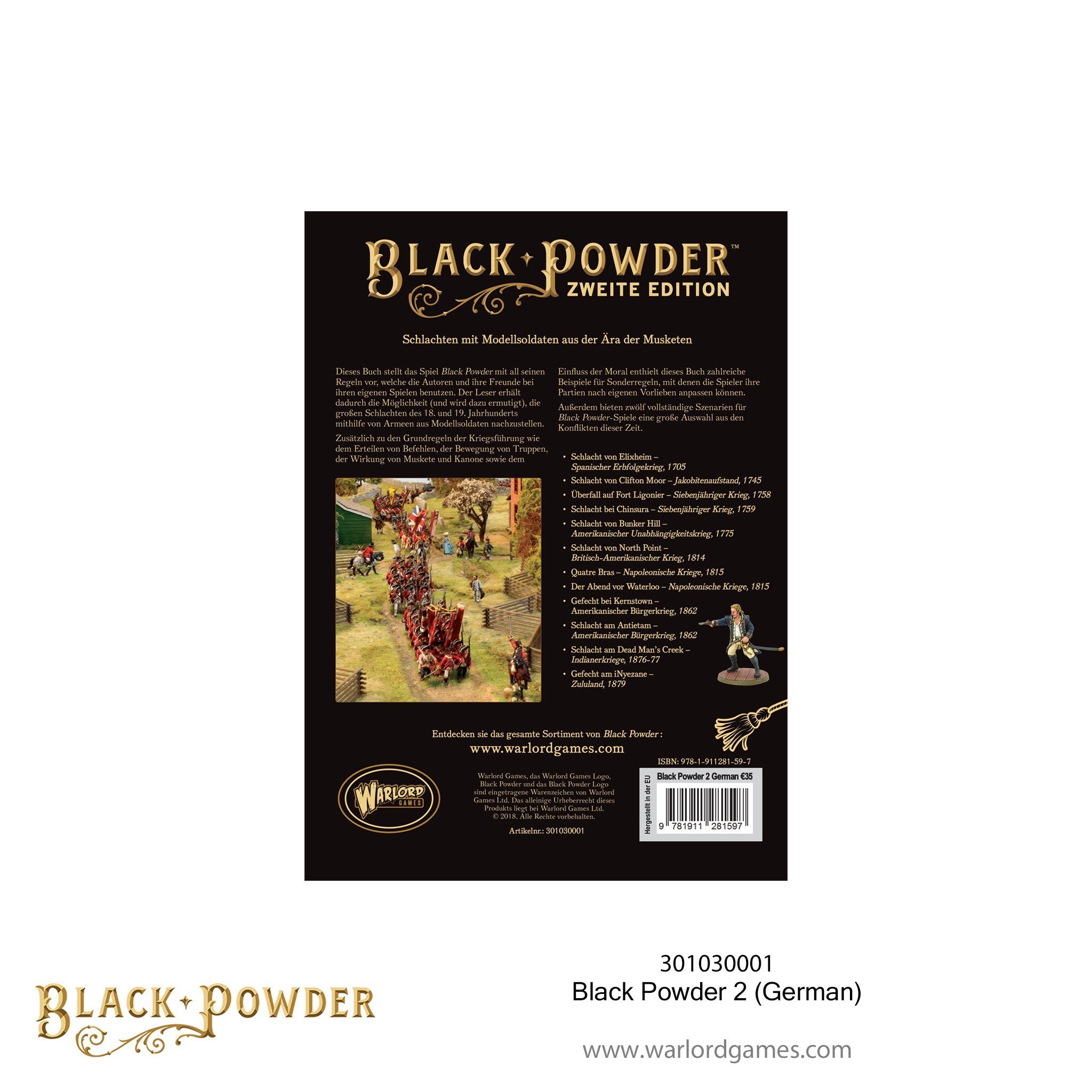 Der Leser erhält dadurch die Möglichkeit (und wird dazu ermutigt), die großen Schlachten des 18. und 19. Jahrhunderts mithilfe von Armeen aus Modellsoldaten nachzustellen. Zusätzlich zu den Grundregeln der Kriegsführung wie dem Erteilen von Befehlen, der Bewegung von Truppen, der Wirkung von Muskete und Kanone, sowie dem Einfluss der Moral, enthält dieses Buch zahlreiche Beispiele für Sonderregeln, mit denen die Spieler ihre Partien nach eigenen Vorlieben anpassen können. Außerdem bieten zwölf vollständige Szenarien für Black Powder Spiele eine große Auswahl aus den Konflikten dieser Zeit.