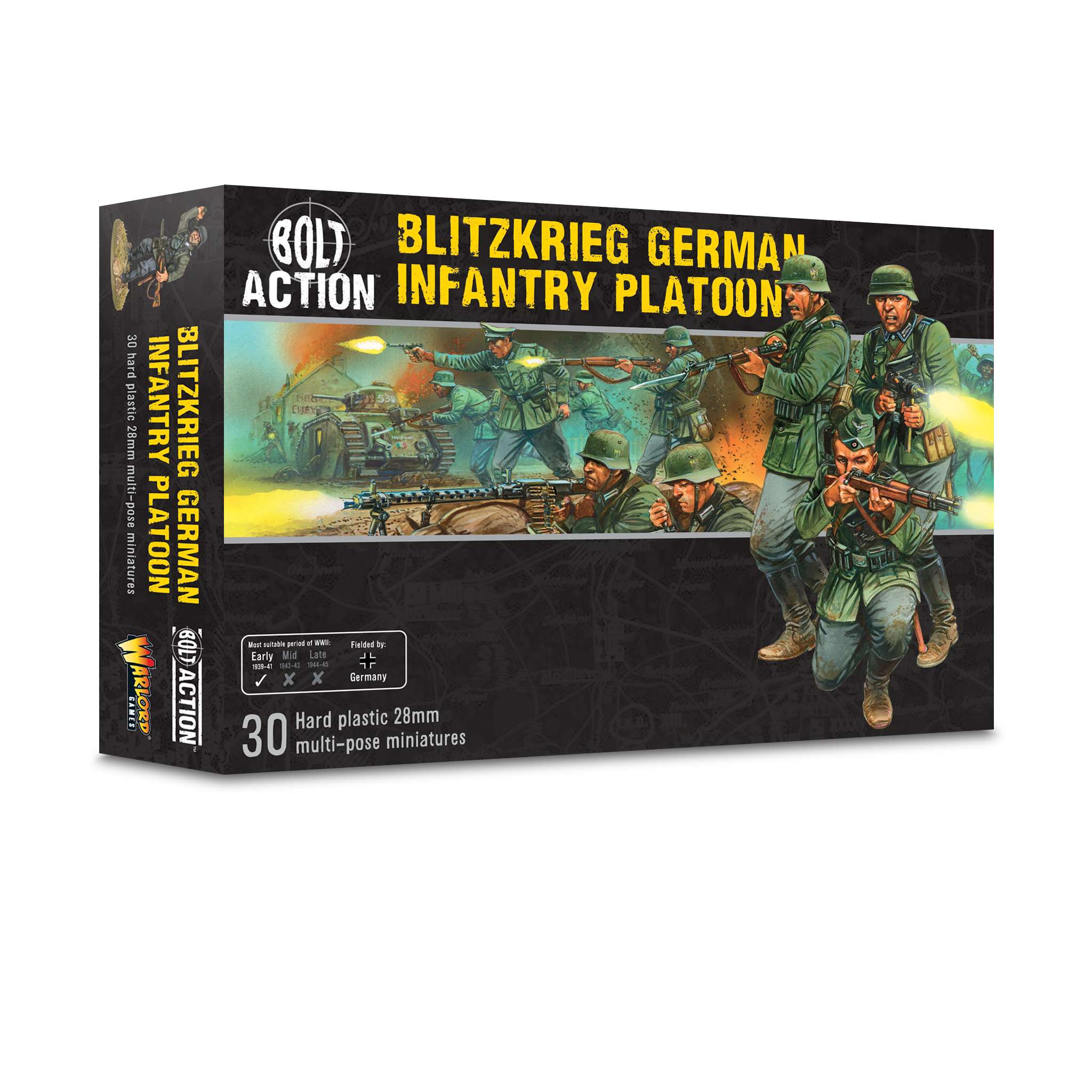 Whilst the glory often went to the armoured knights of the panzer divisions, the infantry were the spine of the Wehrmacht. Germany's cunning use of Blitzkrieg tactics conquered Poland, swept through the Low Countries and defeated France, before turning their attention to the Soviet Union. Soviet forces were pushed all the way to Moscow as the relentless march of Hitler's landsers swept all before them.