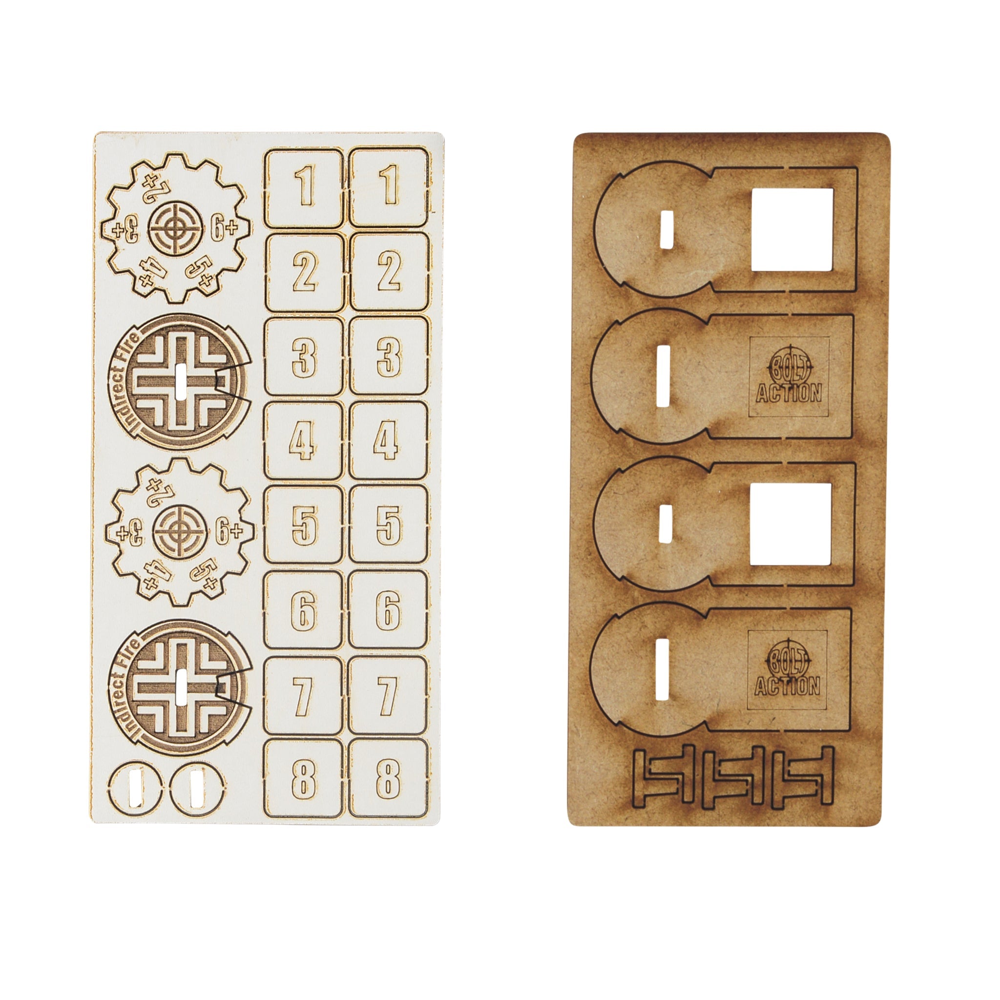 With indirect fire more prevalent than ever on the Bolt Action tabletop, you’ll want to make keep track of which of your weapons are ranging in on the enemy. These markers ensure you know who’s shooting at whom, and what they need to hit next turn, eliminating confusion and letting you mark your targets with confidence.