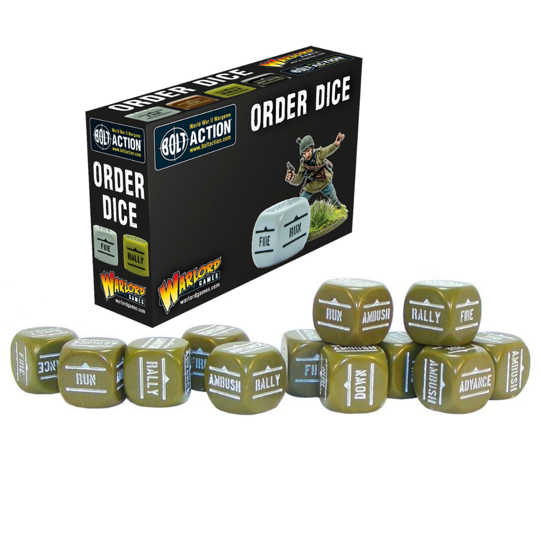Bolt Action utilises a random unit activation system using Order Dice. Each player will need one set of Orders Dice in a different colour to that of their opponent.