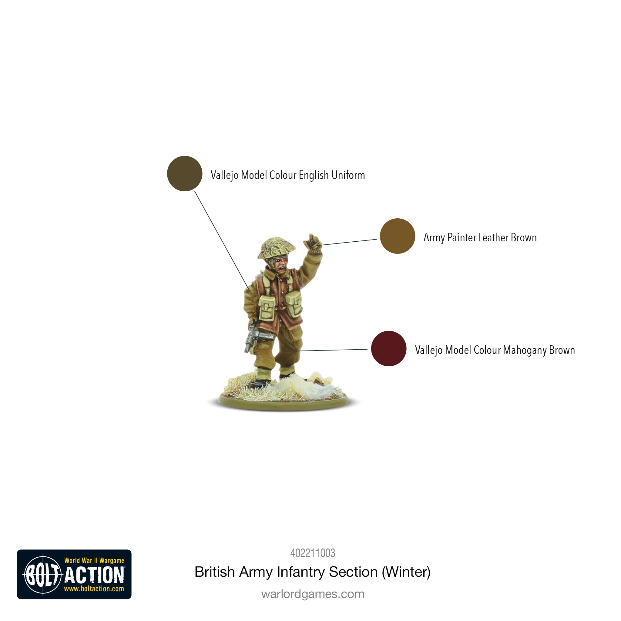 As with most British Commonwealth infantry sections, the British Infantry Section Winter is based around the sustained firepower of the Bren light machine gun, the other infantrymen carrying extra Bren magazines in addition to their own weapons.