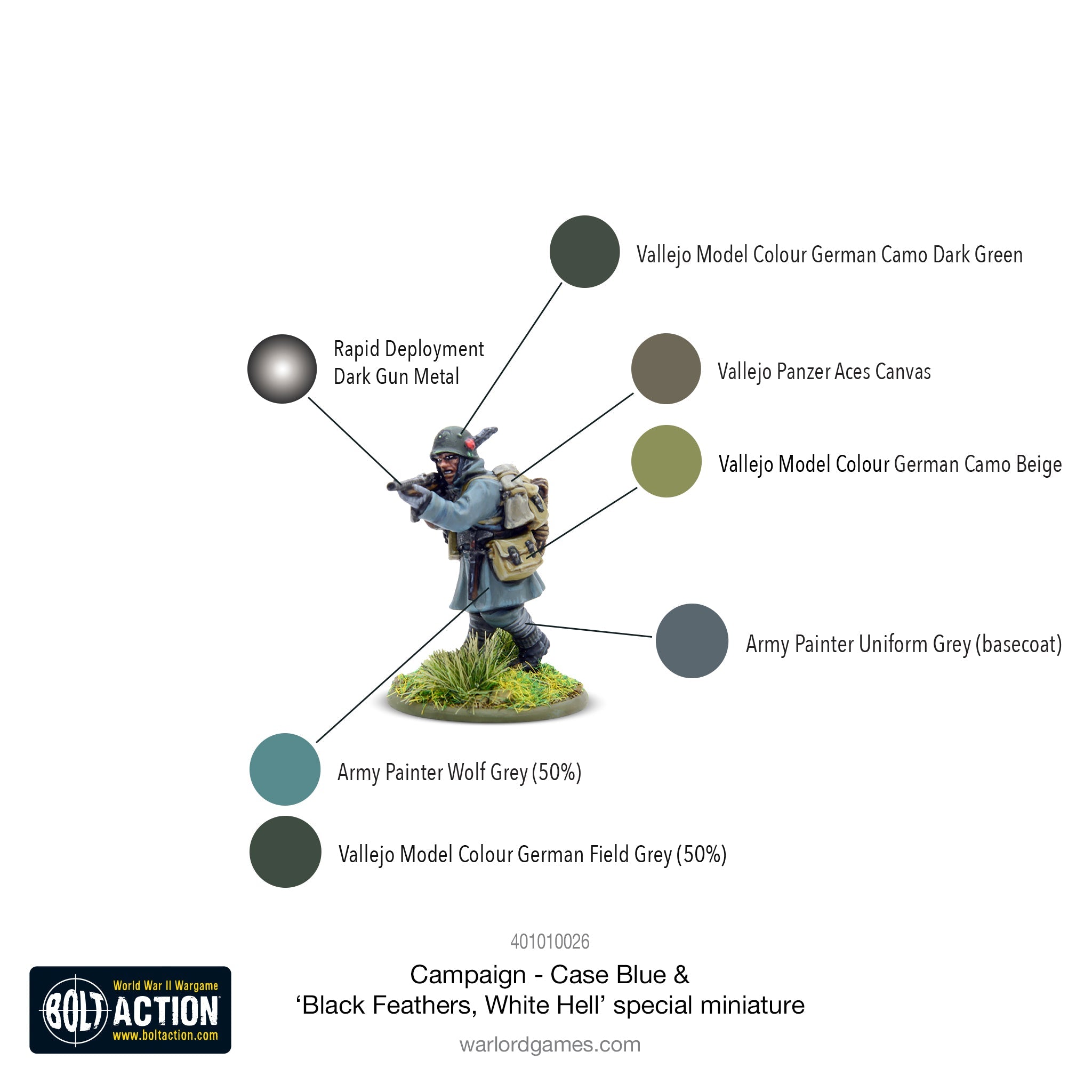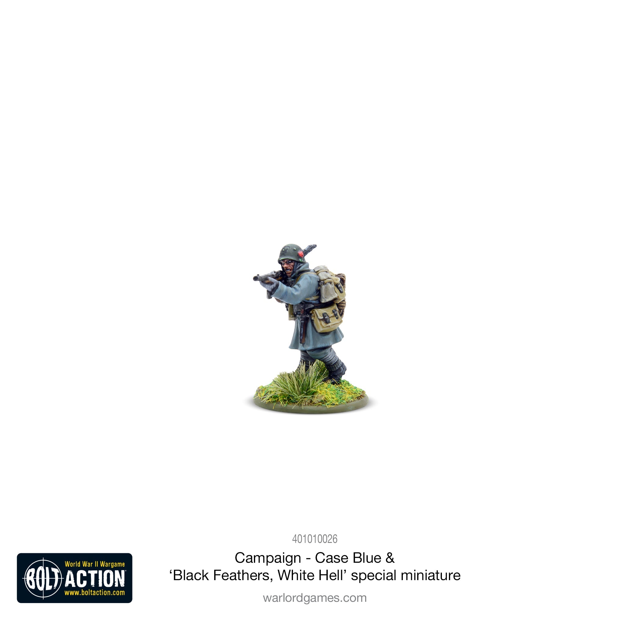 Free special miniature! 'Black Feathers, White Hell' depicts an embattled Italian Alpini soldier in cold weather gear as he combats the bitter Russian winter and the vast Red Army. You'll receive this fantastic exclusive miniature free when buying Case Blue directly from the Warlord Games webstore.