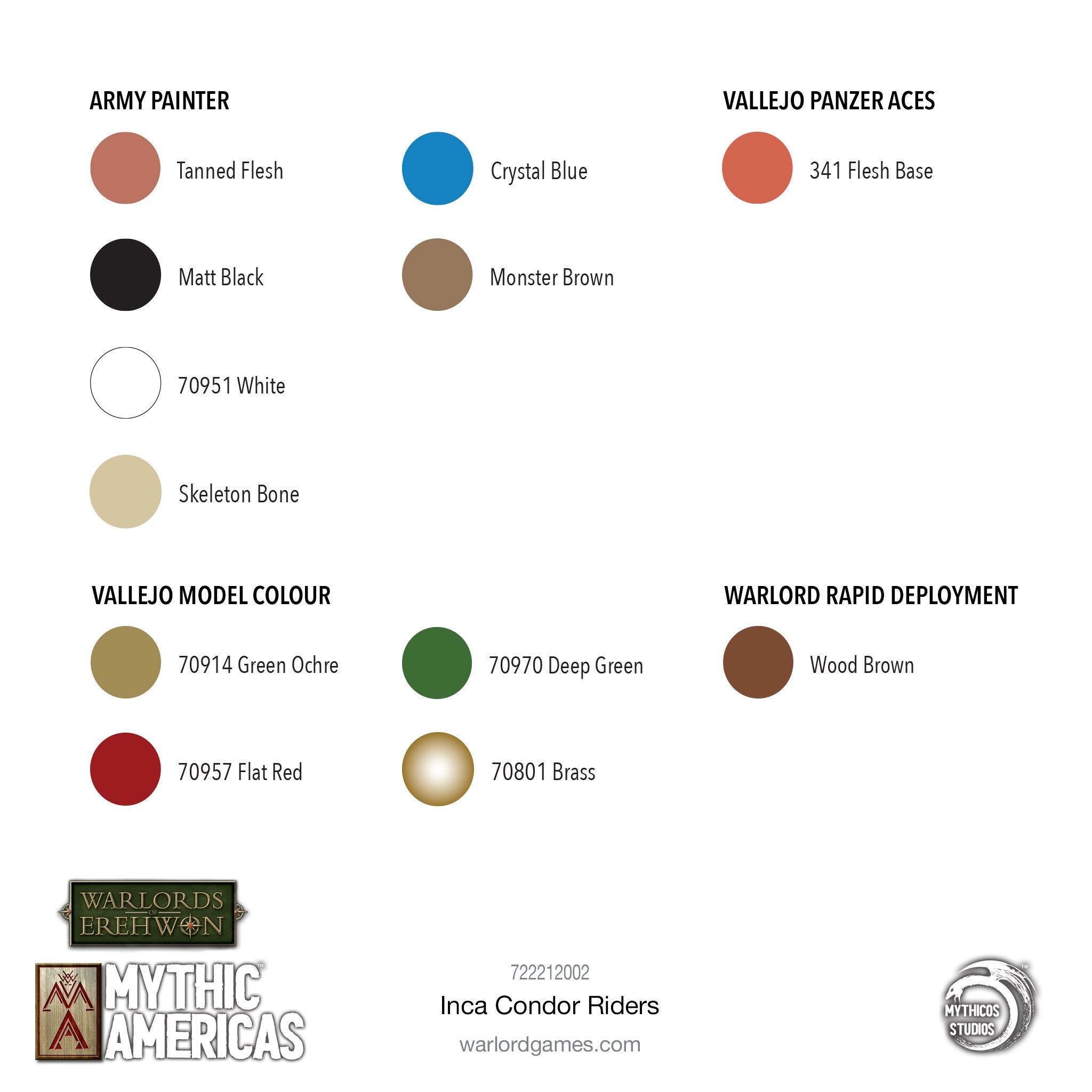 Circling above the battlefield, the Condor Riders of an Inca warband track enemy movements and positions. Then, once battle is joined, they swoop down to bring death from above. Their speed and maneuverability ensure that can be exactly where needed to assault the enemy before soaring away to the safety of the sky.