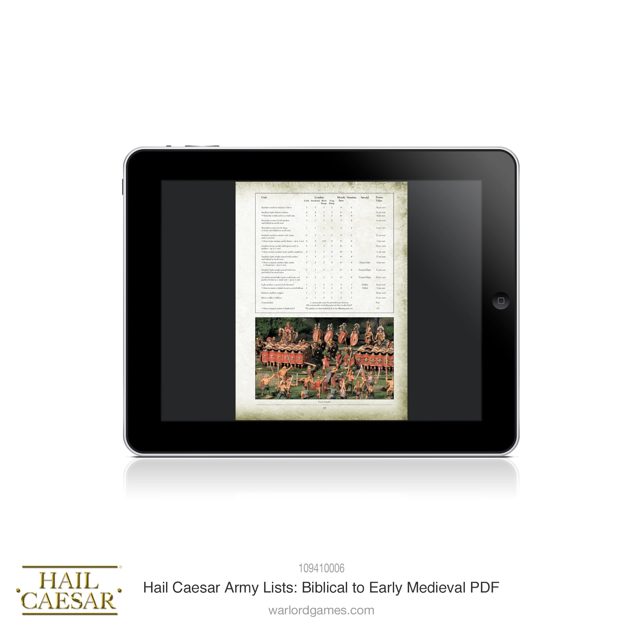 Note that this a digital version (pdf) of the Hail Caesar Army Lists (Biblical to Early Medieval) supplement.