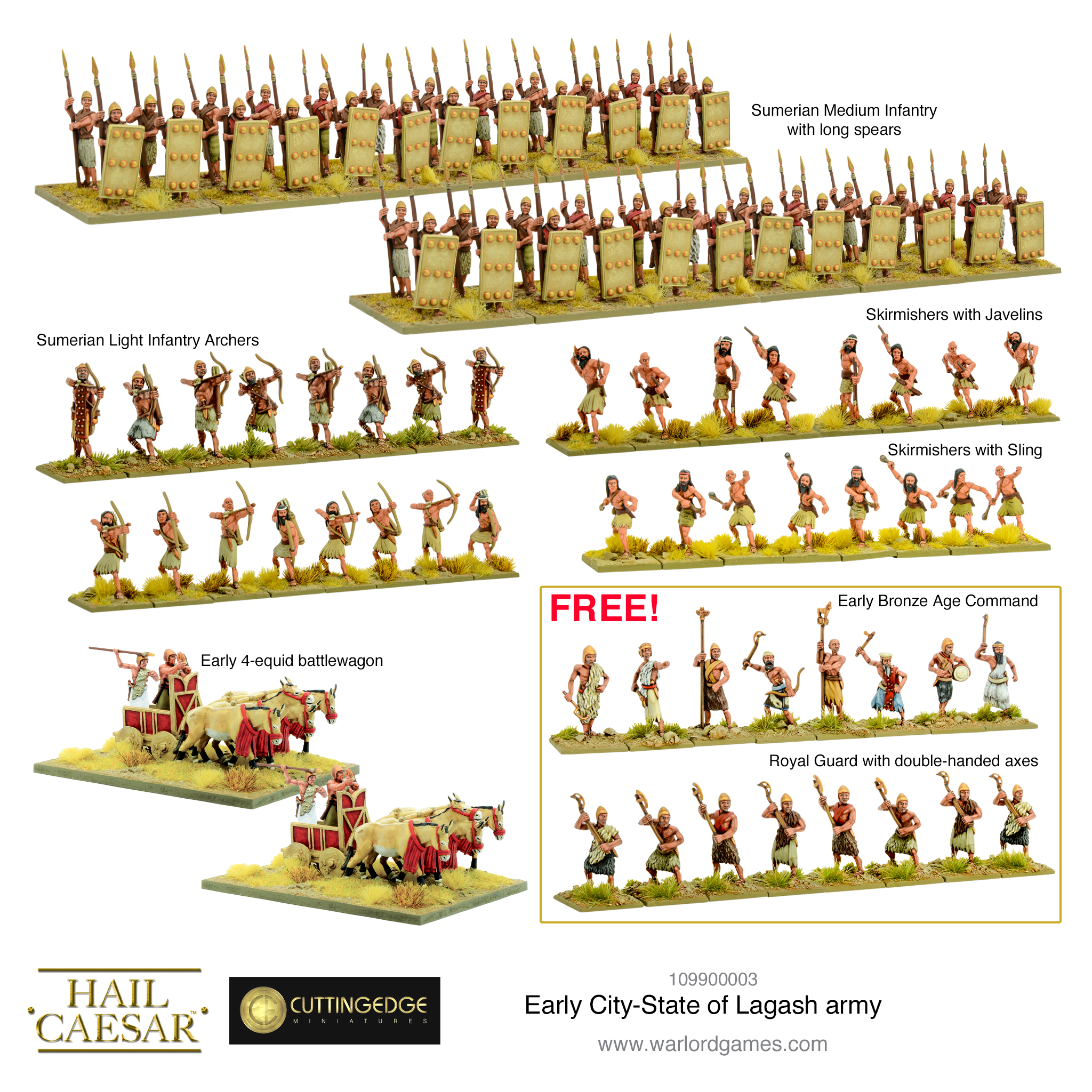 We've put together this fantastic army deal to get you started with the ancient Sumerian city-states of Lagash. This bundle gives you 96 infantry and 2 chariots - the perfect starting point for any Bronze Age army!
