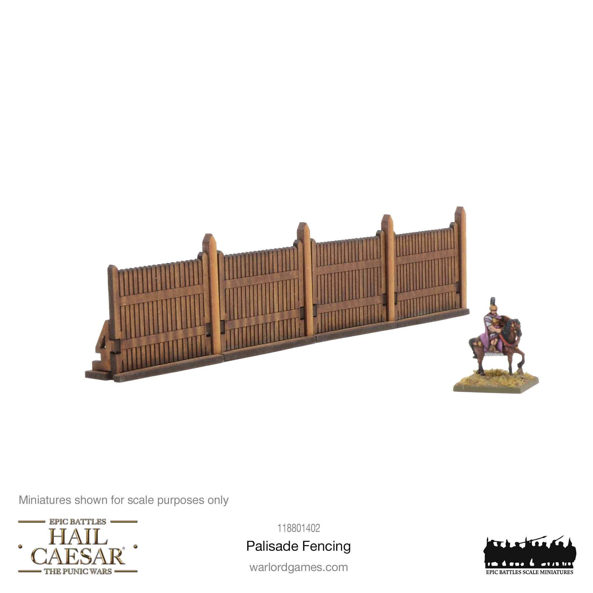 This pack contains four palisade fencing sections, to be used as extensions to expand and enlarge your Roman Marching Fort, or as table dressing in their own right. Each piece clips together with MDF clips, making storage and transport a doddle, and allowing you to perfectly tailor the length of your fencing to your tabletop or tactical requirements! What Hail Caesar Epic Battles army would be complete without some palisade fencing to augment their defences?