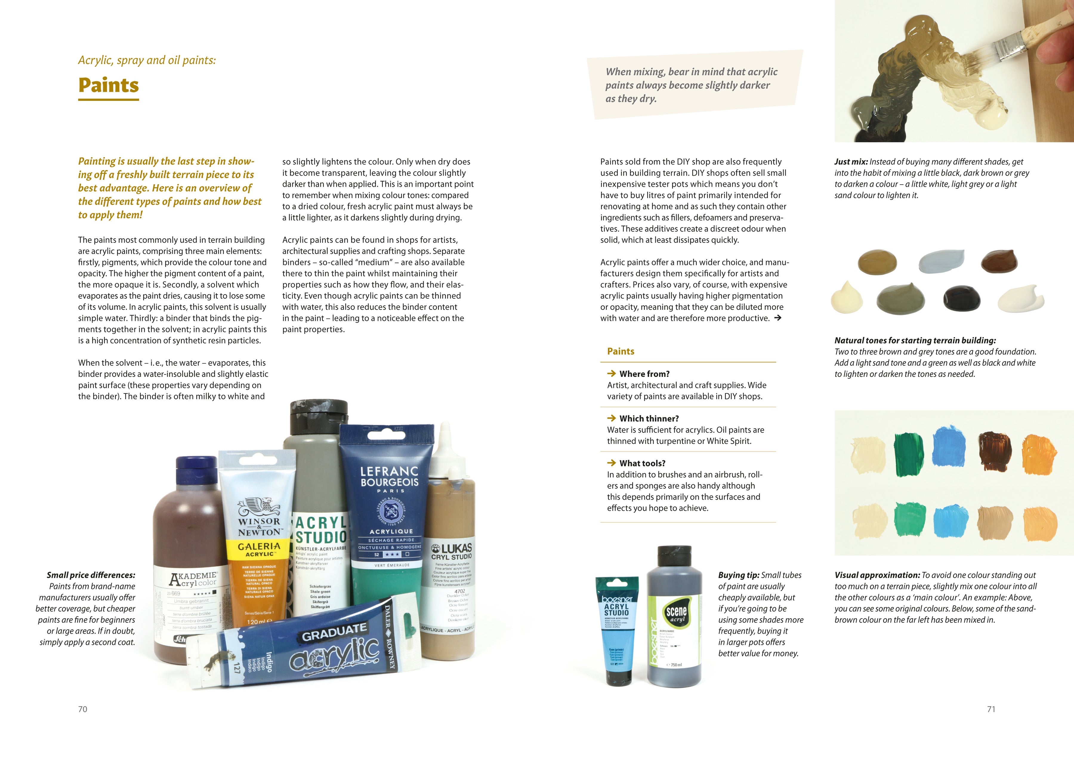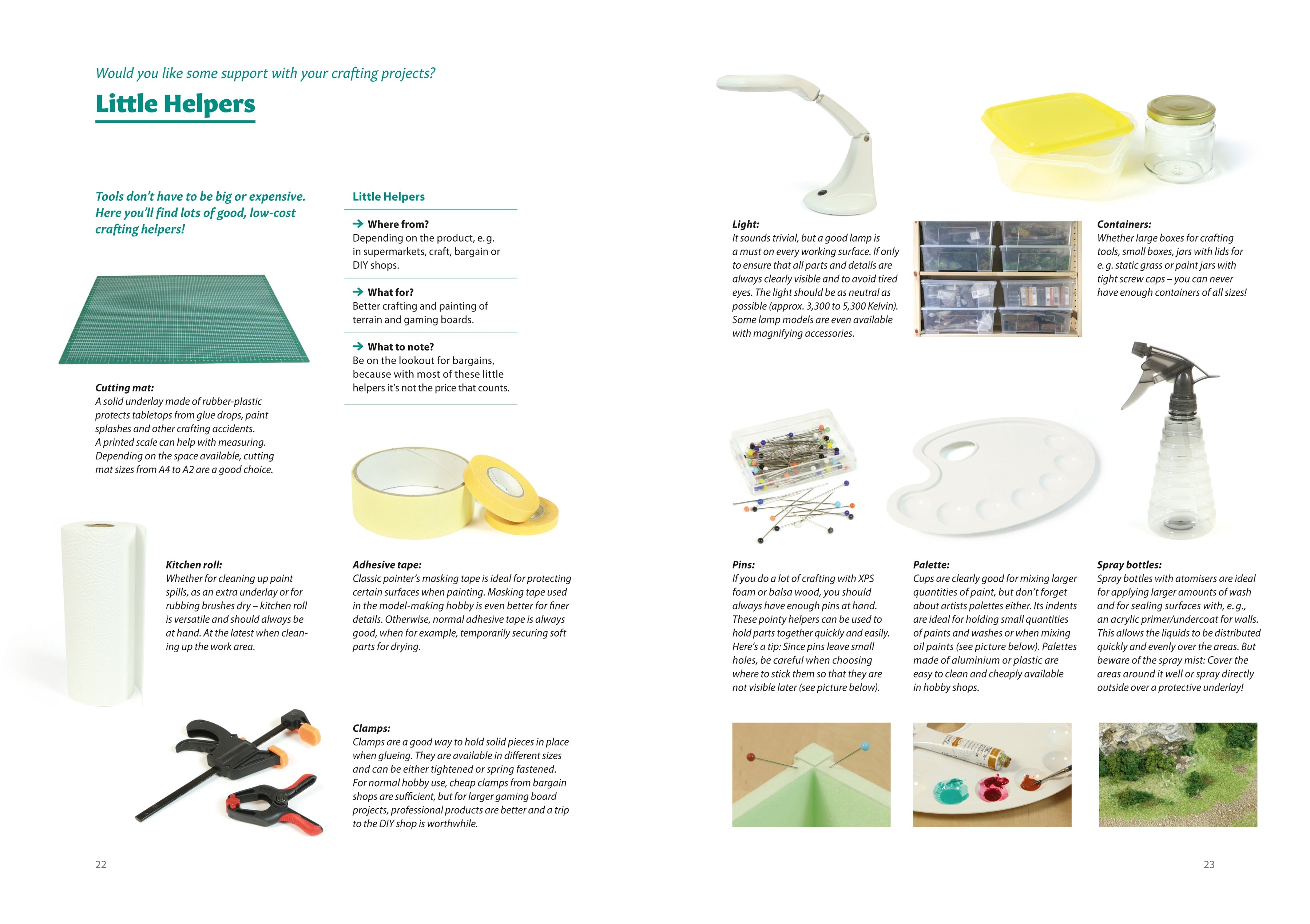Your new reference book and crafting companion! There are countless tools available to the terrain building hobbyist. The list of crafting materials for creating realistic dioramas, model railway landscapes and tabletop gaming worlds is even longer. But which tools are particularly useful and what are the indispensable materials for the hobby table? This book presents a list of the top tools and materials for terrain crafting. In addition to facts and technical features, you will find numerous application examples, practical tips and informative photos over its 96 pages. A clear structure and an index allow you to refer back to topics, making this book your ideal crafting companion.