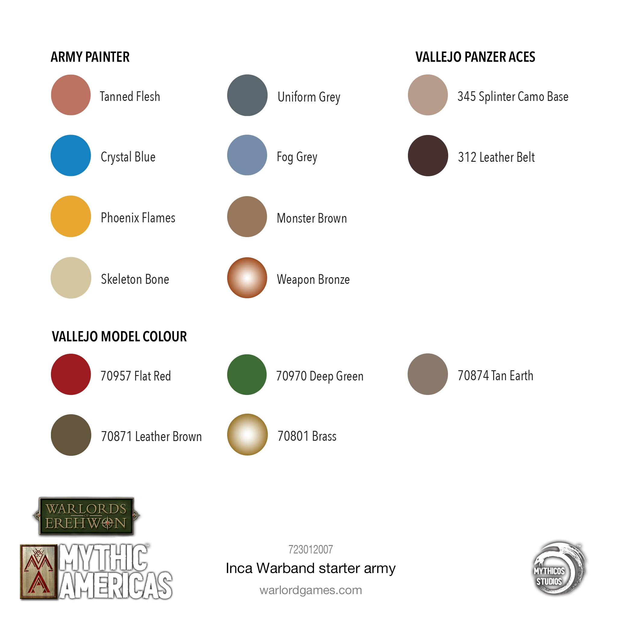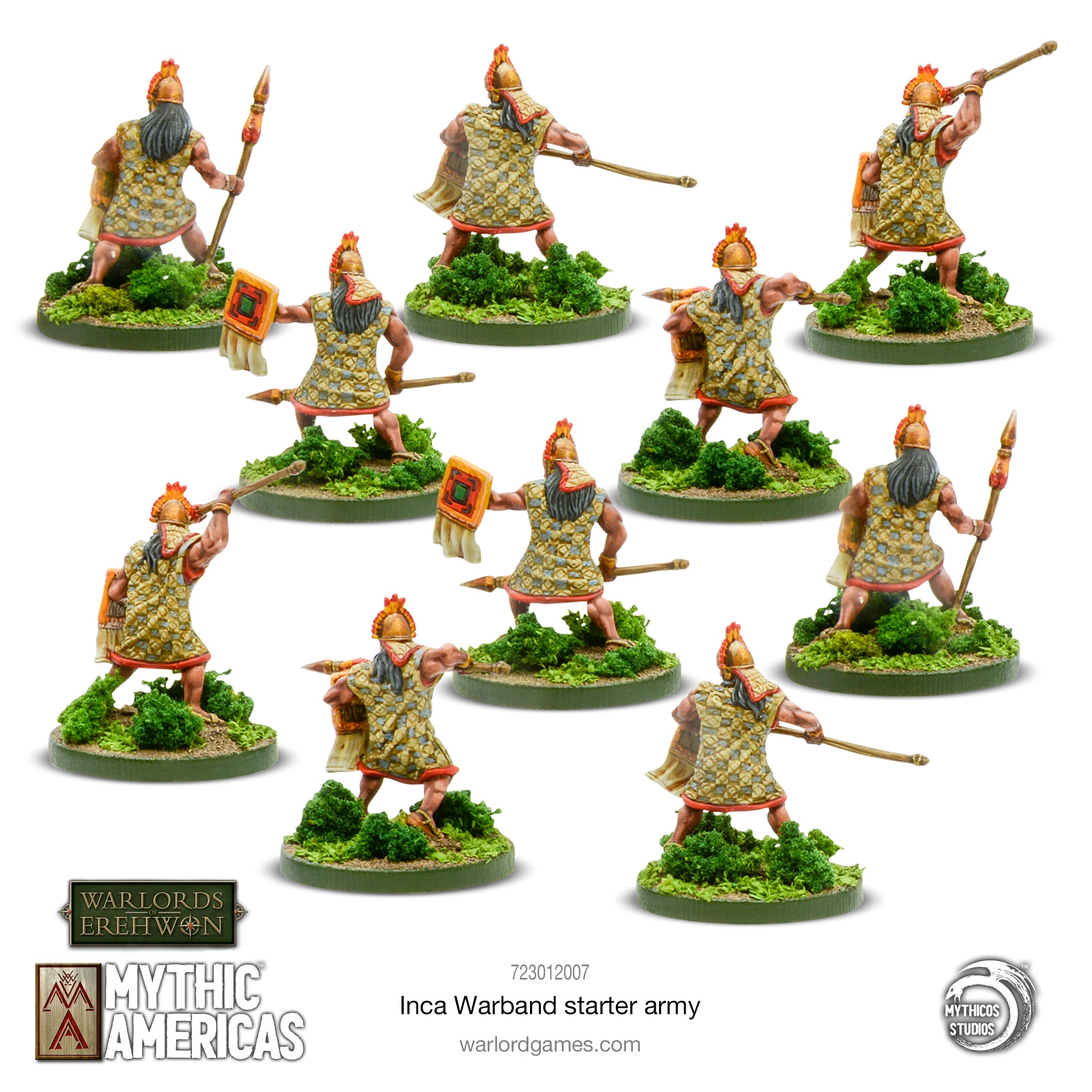 Providing a solid core of Cuzco spearmen and Antisuyu archers supported up by the swooping Condor Riders and led by a might Sapa Warlord the Inca Warband starter army is the ideal way to field the Children of the Inca in your games set in Warlords of Erehwon: Mythic Americas.