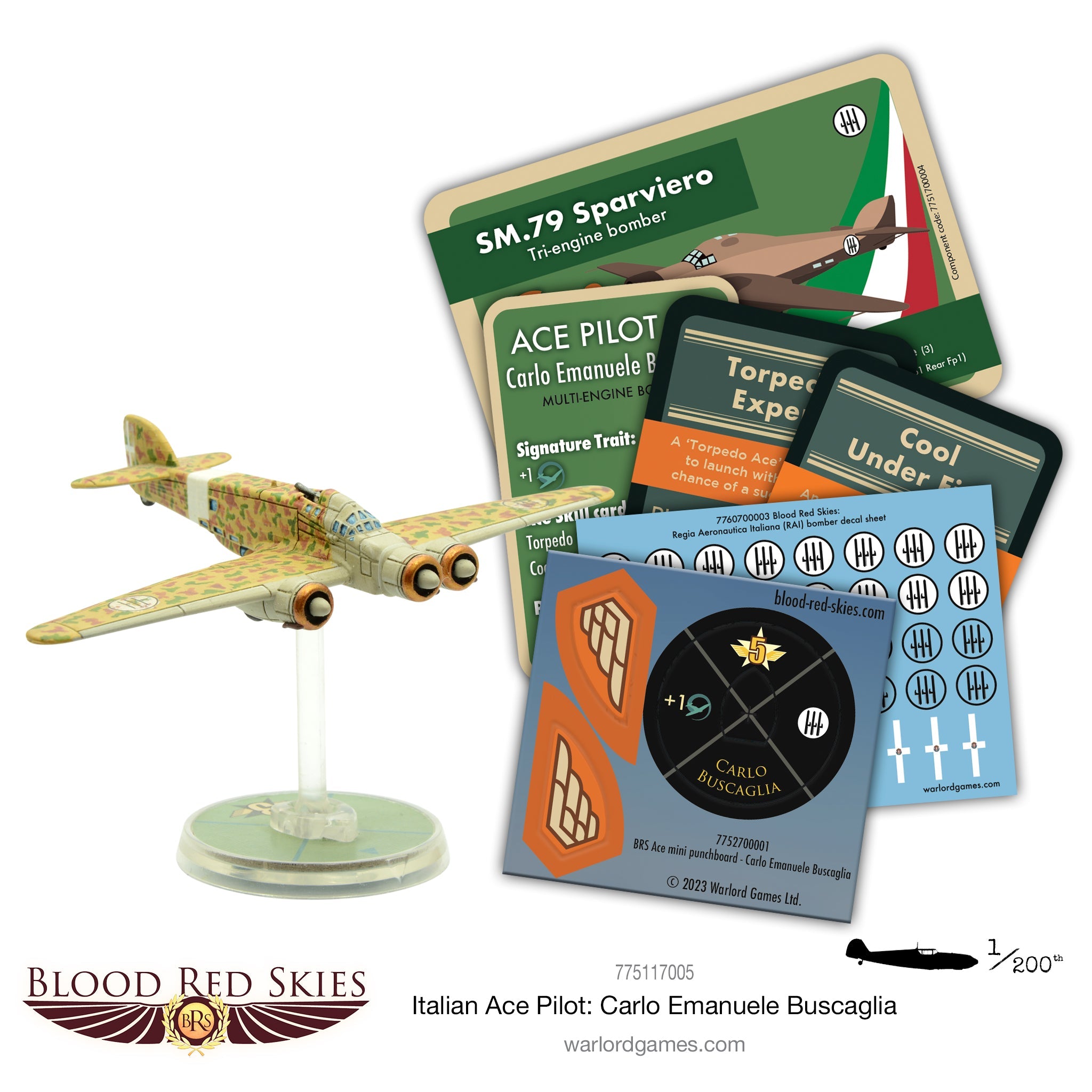 Contains one Warlord Resin PlusTM SM.79 Sparviero aircraft plus game accessories.