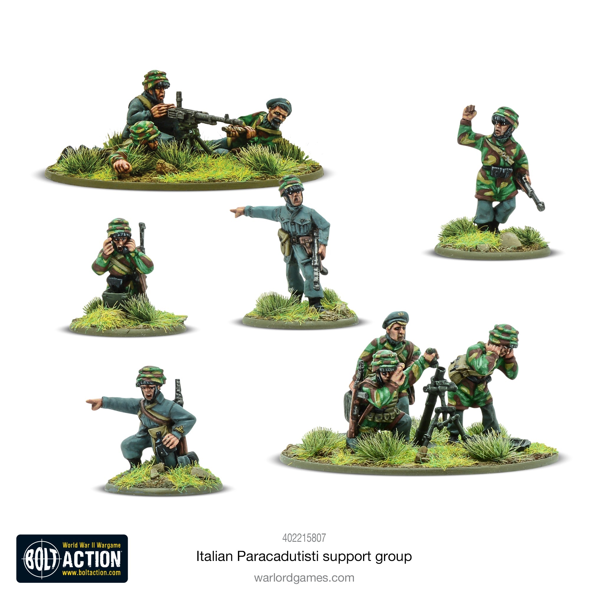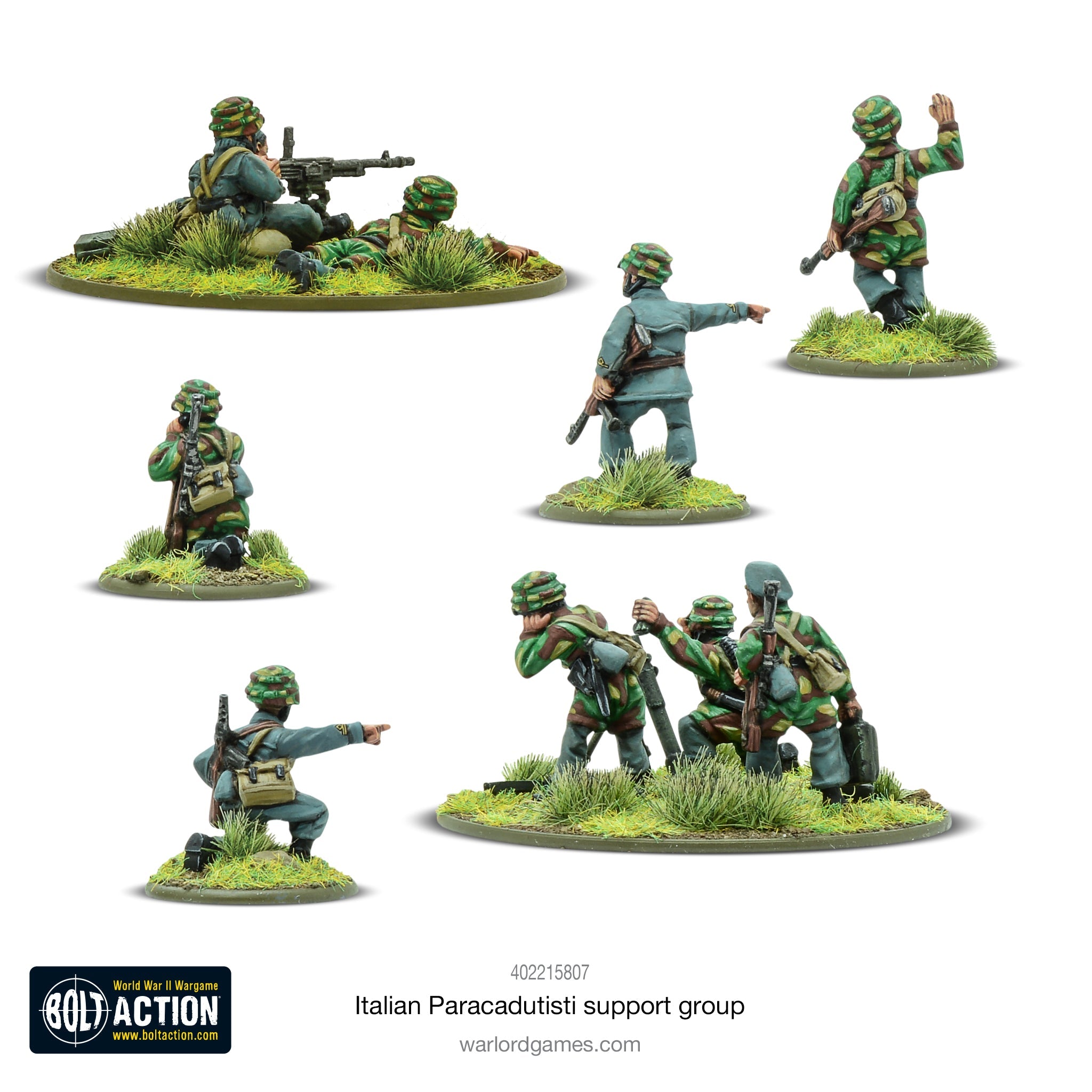 Like their Regio Esercito (Royal Italian Army) counterparts, the airborne divisions relied heavily on the Breda 37 medium machine gun and the Mortaio da 81/14 Modello 35 81mm mortar for close fire support.