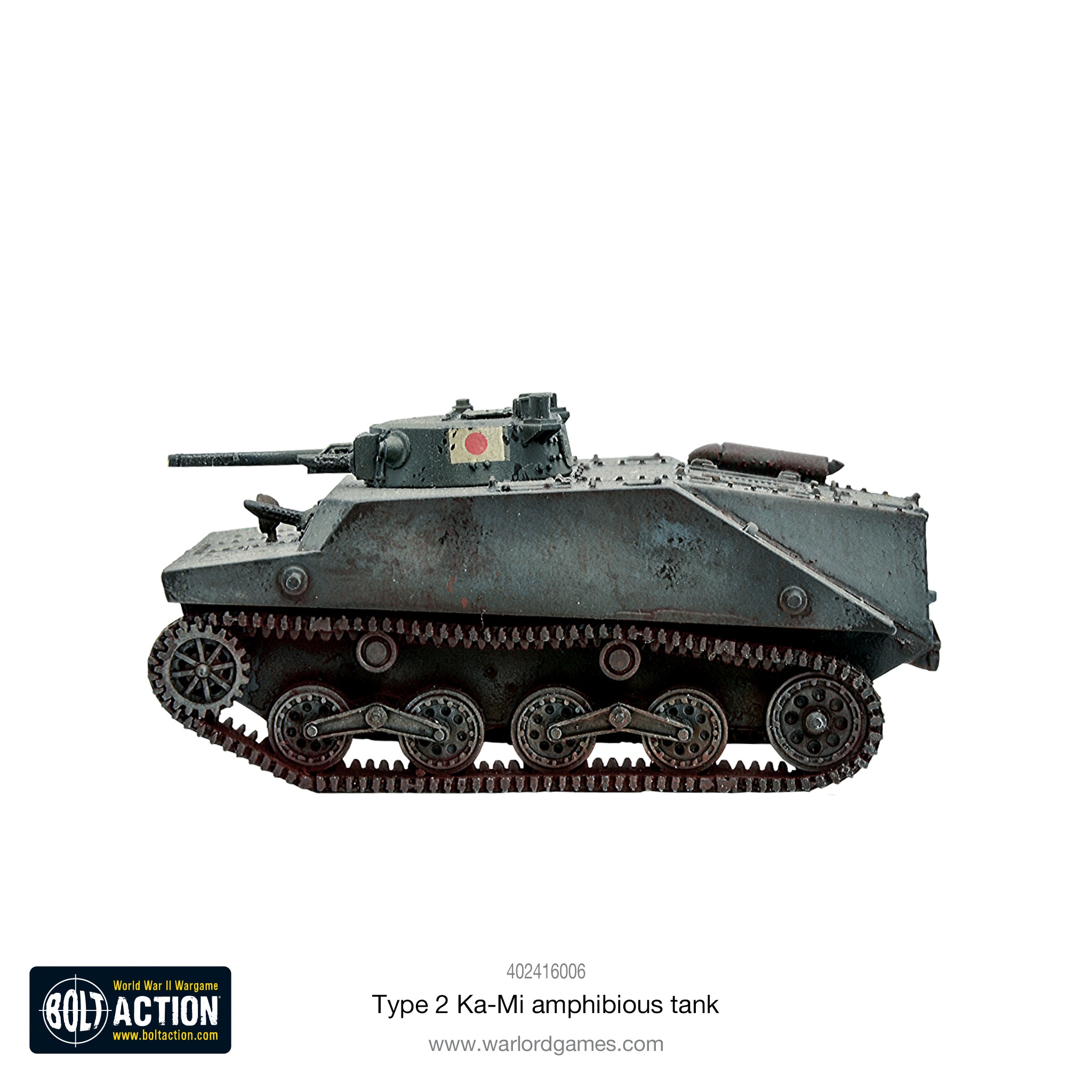 The Type 2 Ka-Mi was the Imperial Japanese Navy’s first amphibious tank. Based upon the ubiquitous Ha-Go chassis with detachable pontoons and a boat hull to aid water travel. The Japanese Navy developed a series of amphibious tanks to support the Special Naval Landing Force during amphibious operations, such as those which the Japanese launched throughout their conquests of early 1941 and 1942.