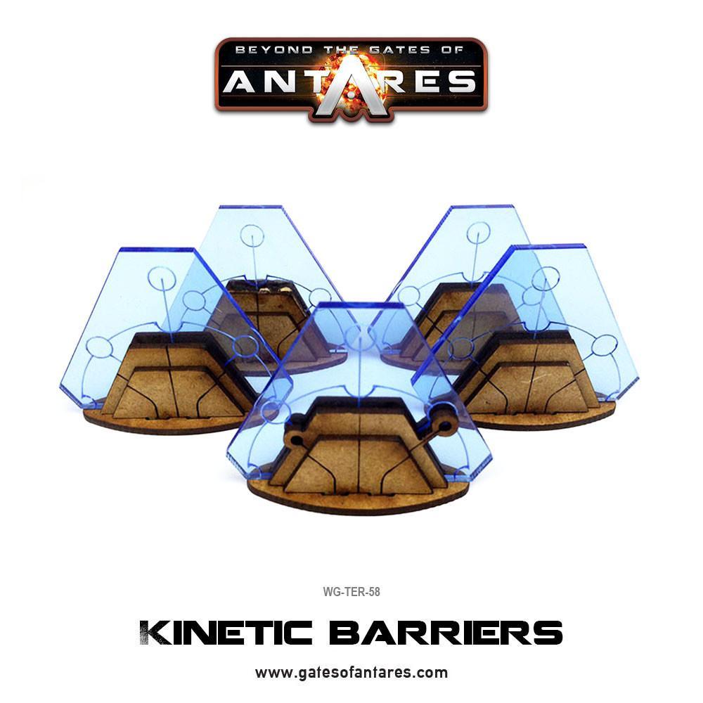 These models represent sections of kinetic barriers – types of fixed kinetic shielding used around defended positions to protect troops from enemy fire. These are the same kind of shields as are carried by Batter Drones, but the shielding is carried by a static nanite barrier and includes a substantial integral power source.