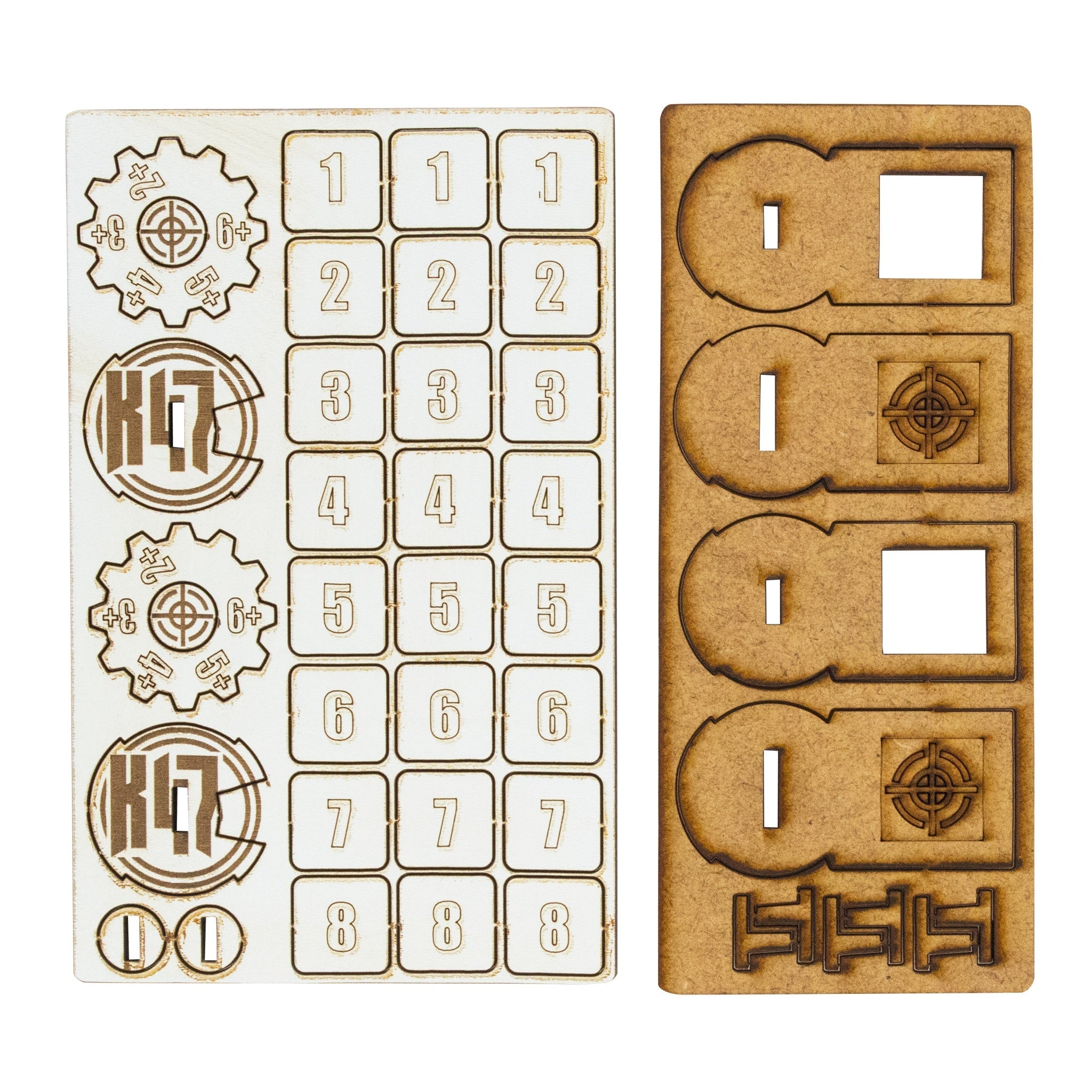 Made of high-quality laser-cut MDF and simple to assemble, these durable markers are an essential addition to every gaming bag! Pack contains two zeroing in markers.