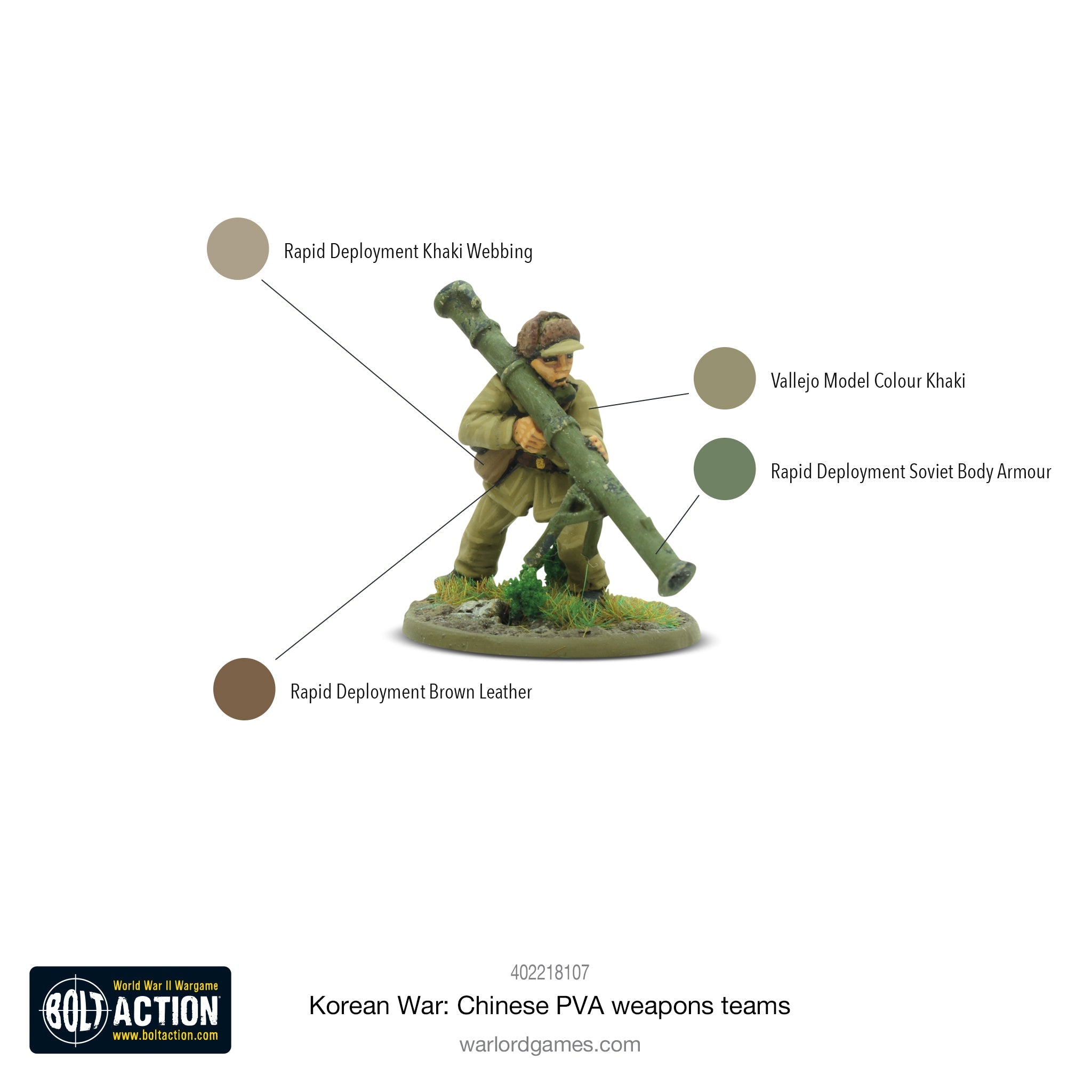 The PVA had a variety of light mortars ranging from the Soviet 50mm mortar to the captured Japanese Type 10 and Type 89 knee mortars. Later in the war the Chinese made a very effective copy of the US 60mm mortar. Each Rifle Company had three 60mm mortars to form a single platoon battery.