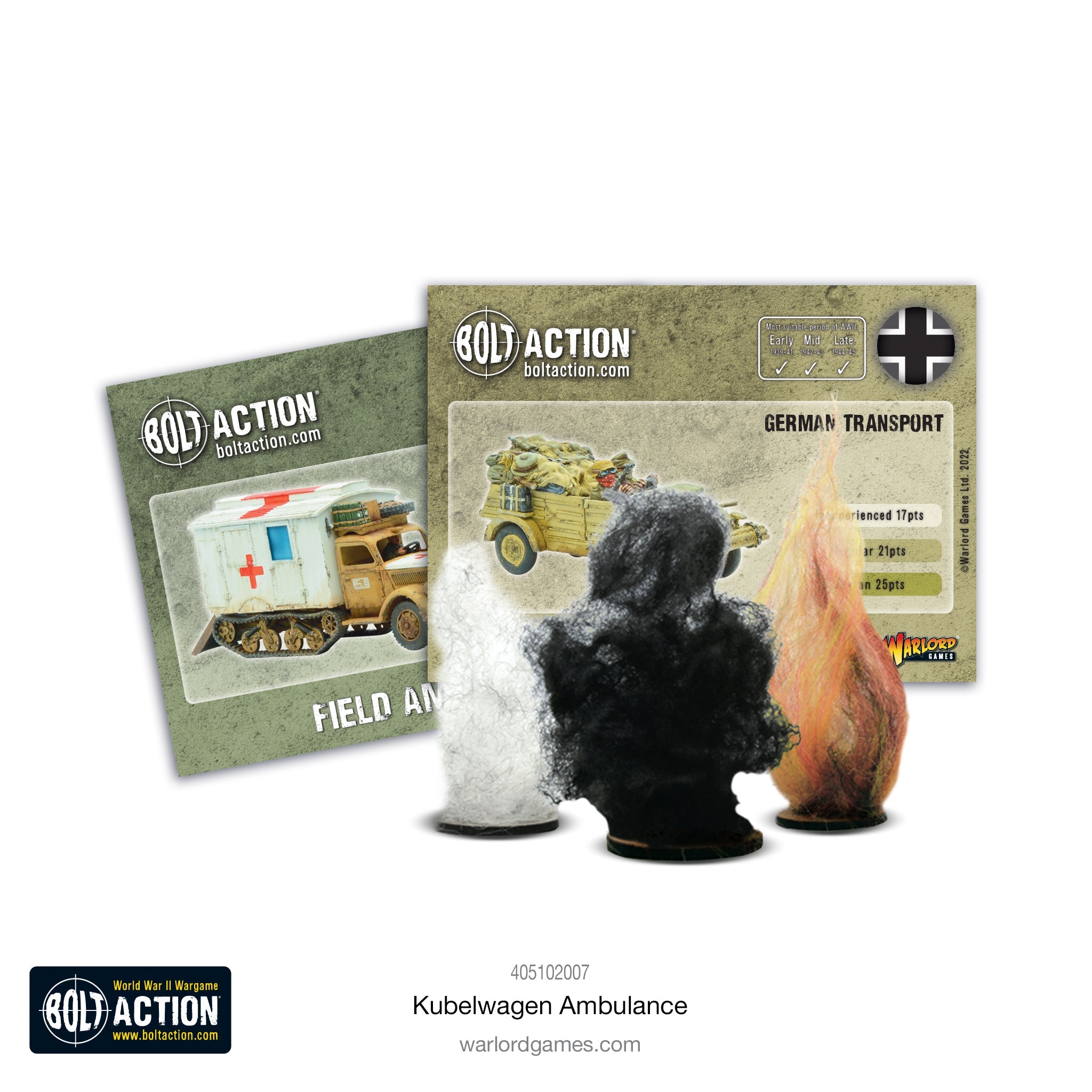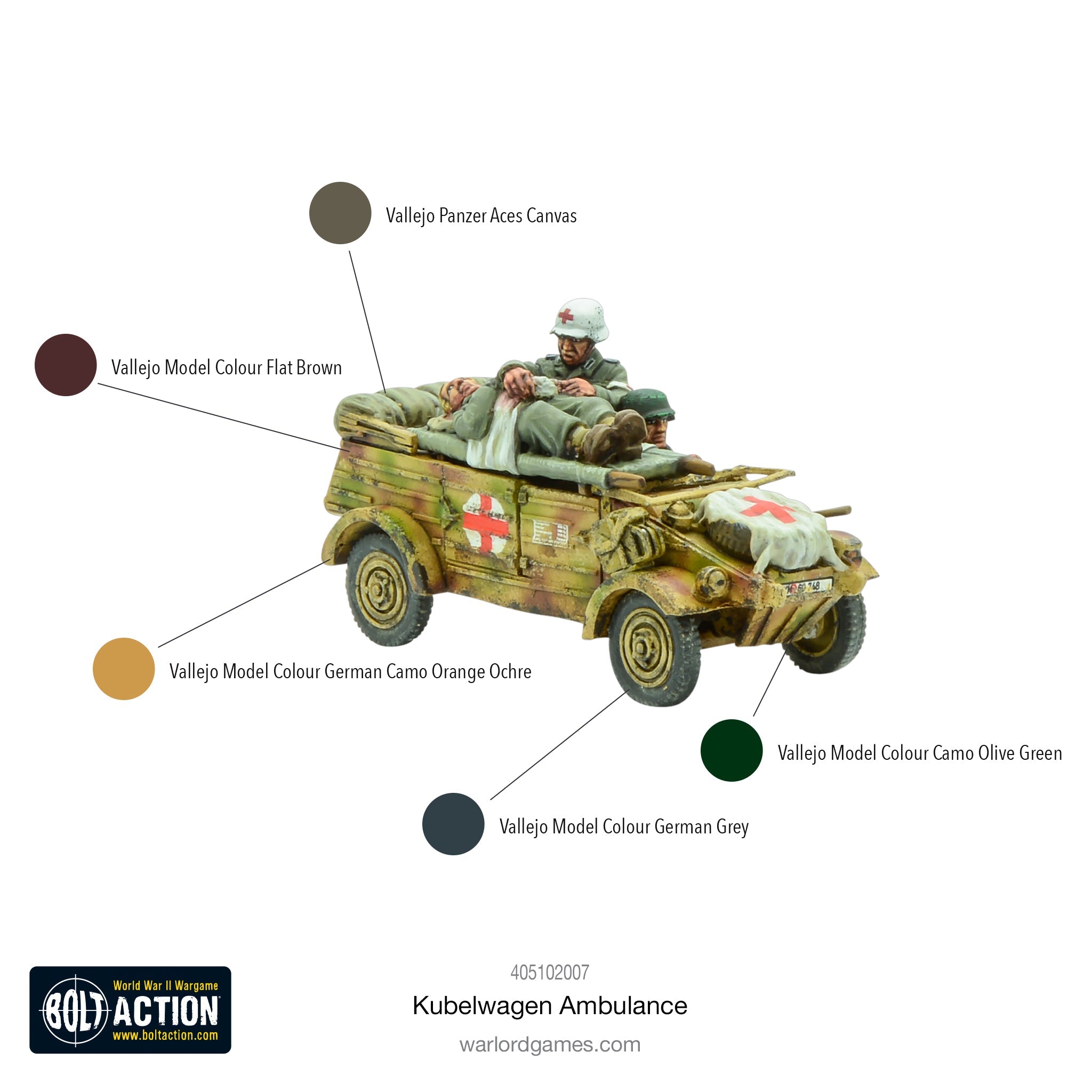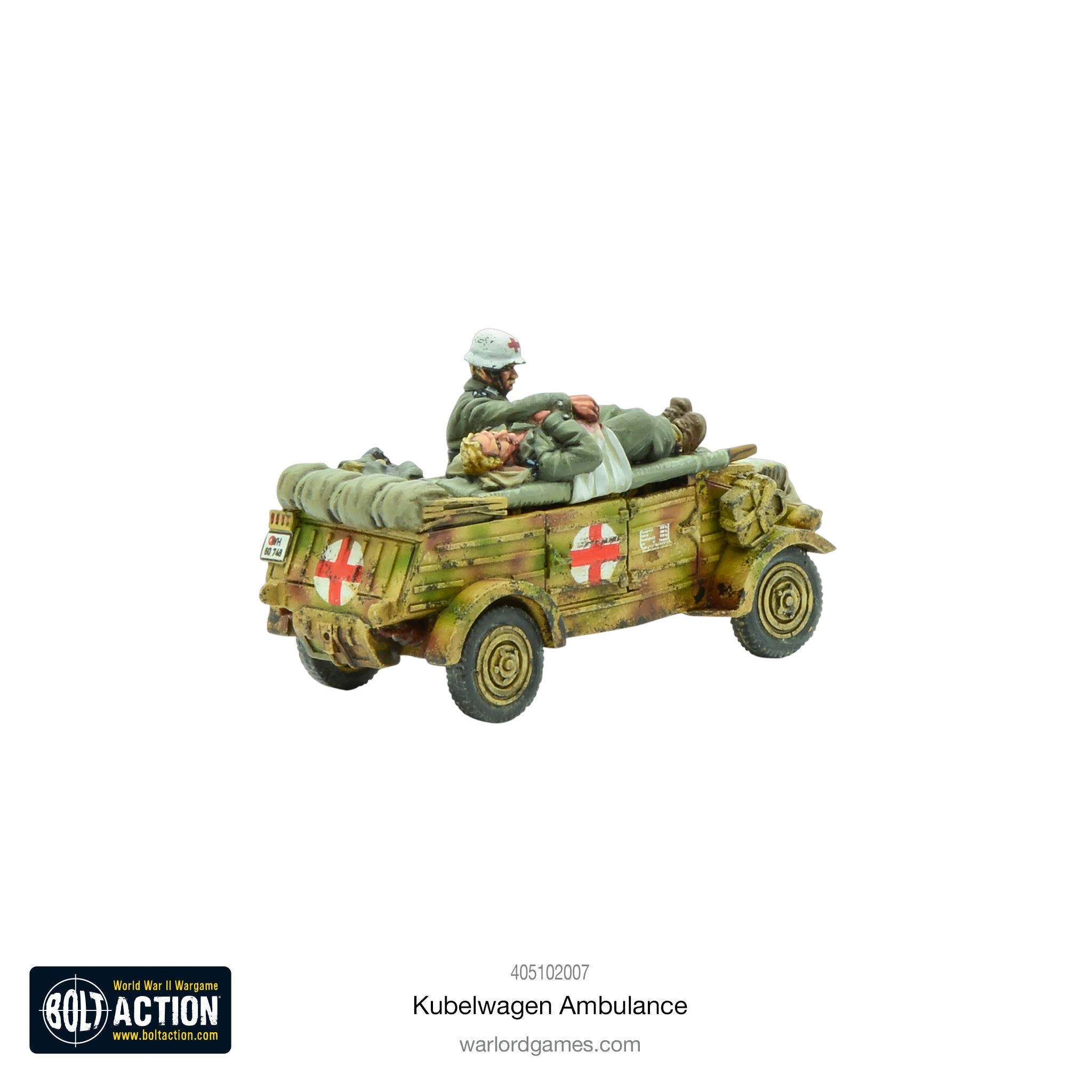 A German medic attends to a casualty on this converted Kubelwagen field car before they speed away to the nearest first aid post. The miniatures can easily be painted as Afrika Korps, Waffen-SS or Heer so this new vehicle has a wide appeal to all players of German armies!