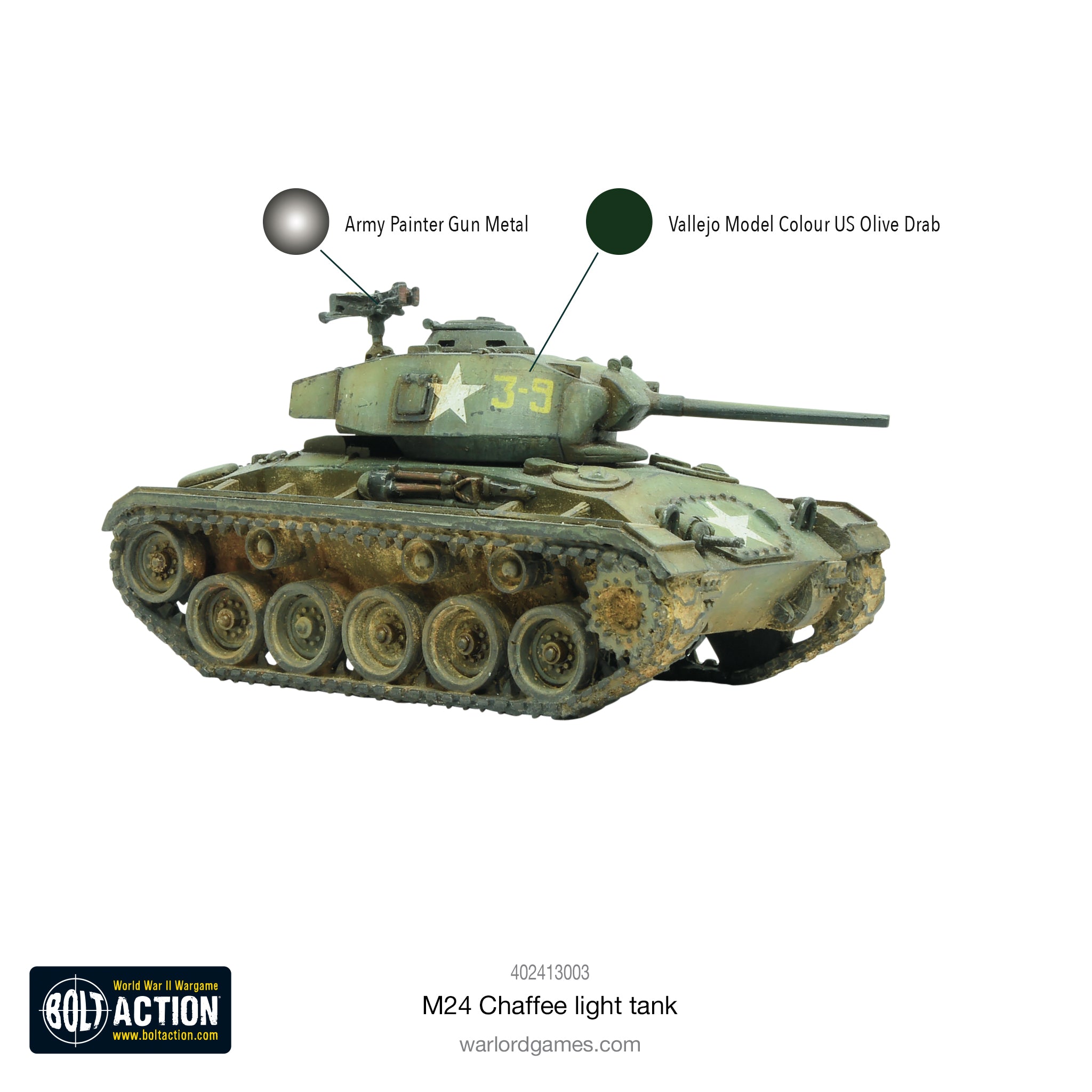 Initially produced as a replacement for the M3/M5 Stuart light tanks, the armour of the M24 was purposely kept light, but it mounted a vastly upgraded lightweight 75mm gun (compared to the 37mm gun found on the Stuart) and its much lower silhouette made it popular with those crewing it.