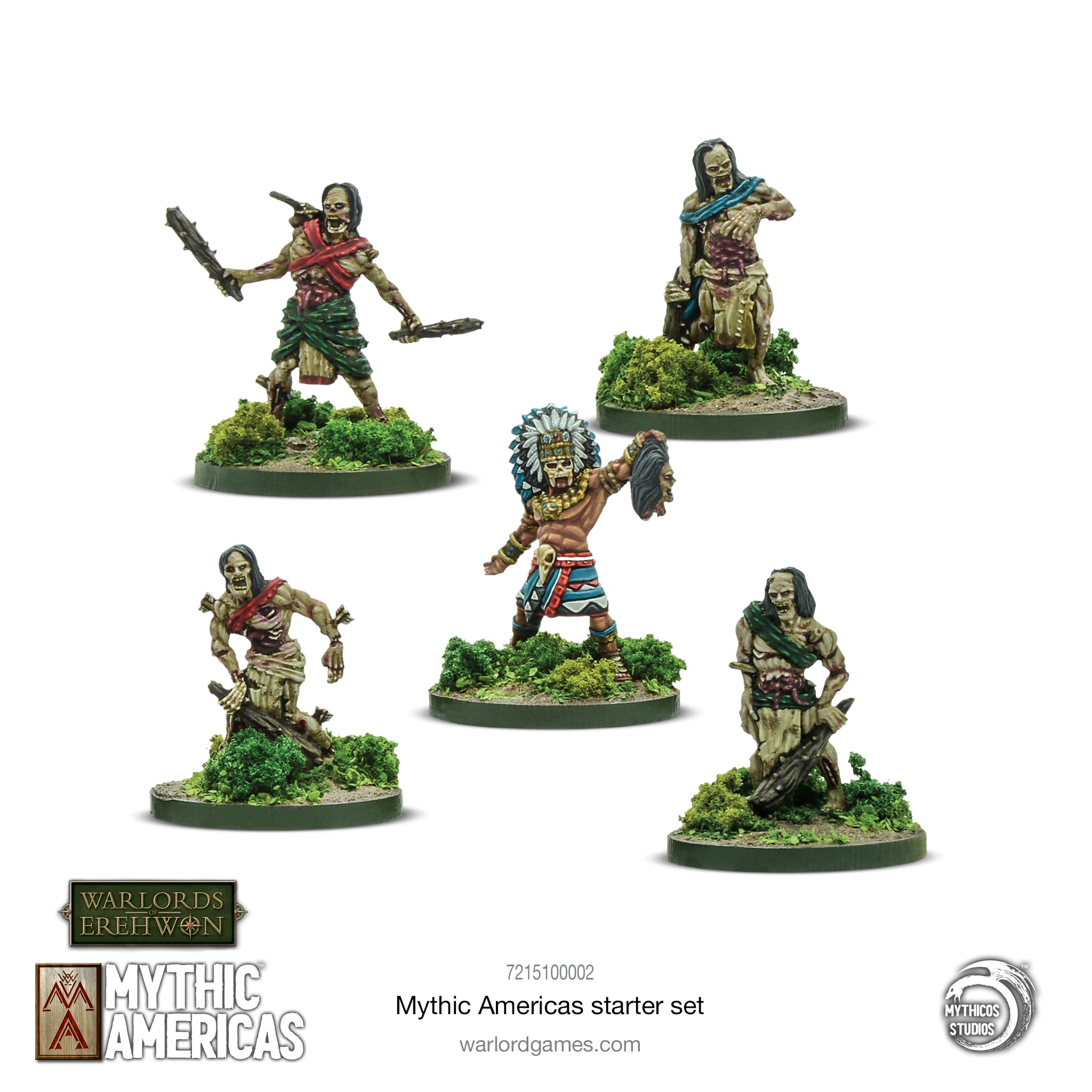 The new Mythic Americas version of Warlords of Erehwon still keeps at its heart a singular objective in mind – to allow for fast-paced and exciting miniature battles upon a standard-sized table between rival forces known as Warbands. A Warband represents your own band of warriors – courageous humans, blood-thirsty monsters, legendary heroes, and mythological entities from the depths of the darkest myths.