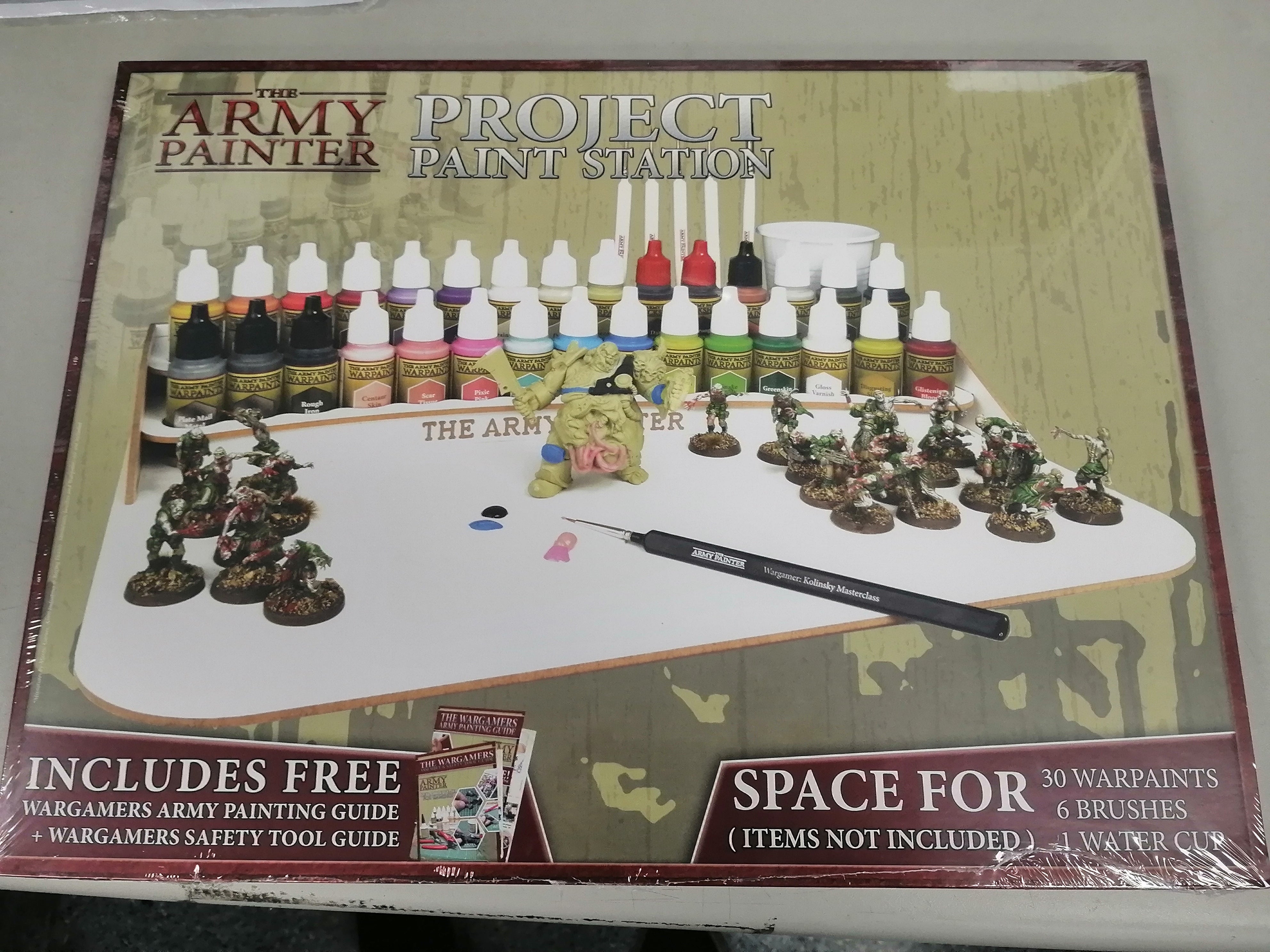 Can hold up to 30 war paints + 6 brushes and your water cup.