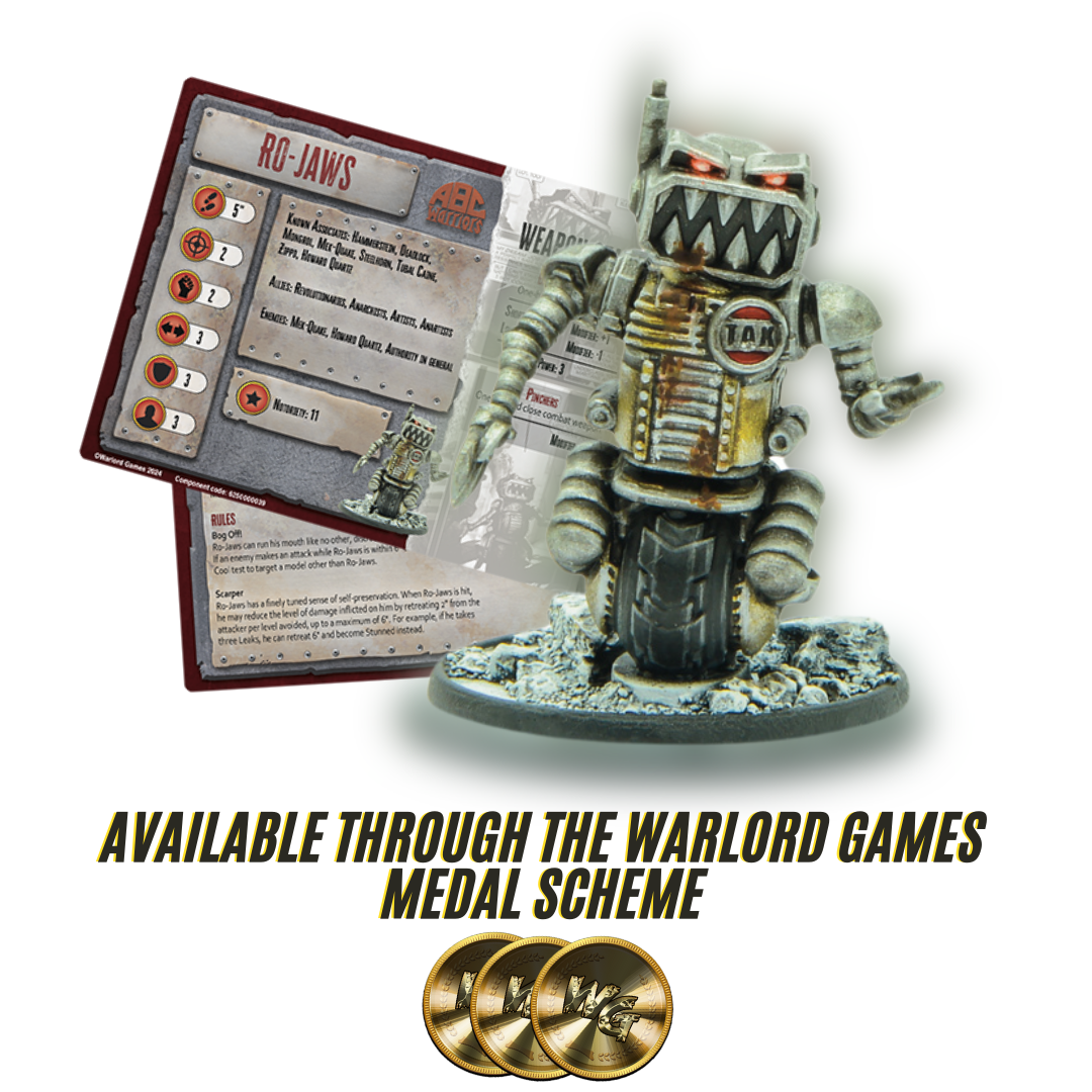 Cashing in 200 Medals this month gets you access to one of our newest releases for 2000AD's ABC Warriors - The small but mighty Ro-Jaws. Ordinarily Ro-Jaws is only available as part of a trio, but you'll be able to get your hands on these models through the medals store over the coming months! What better way to treat yourself, than something fully integrated and usable in the ABC Warriors Game, solely by being an active customer!