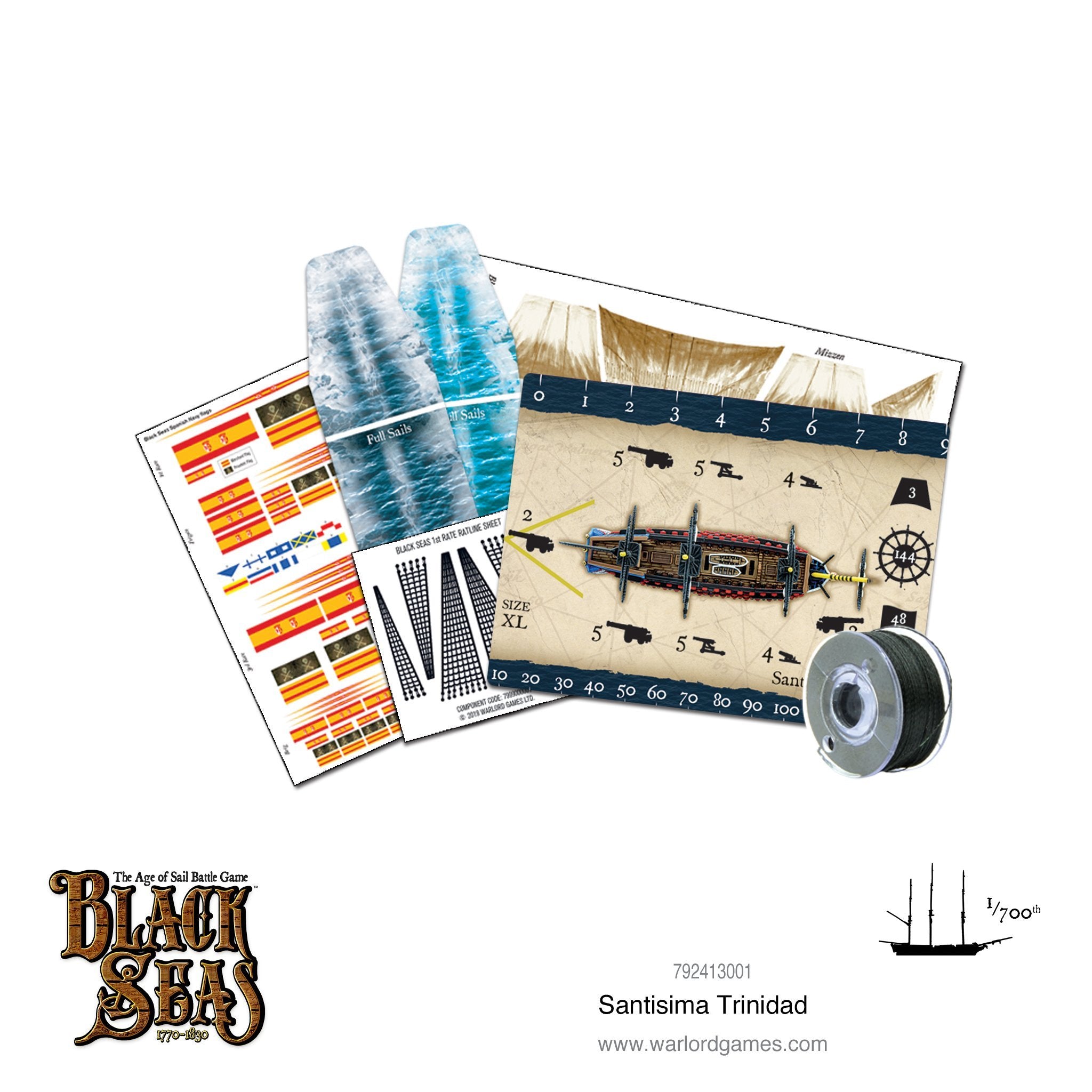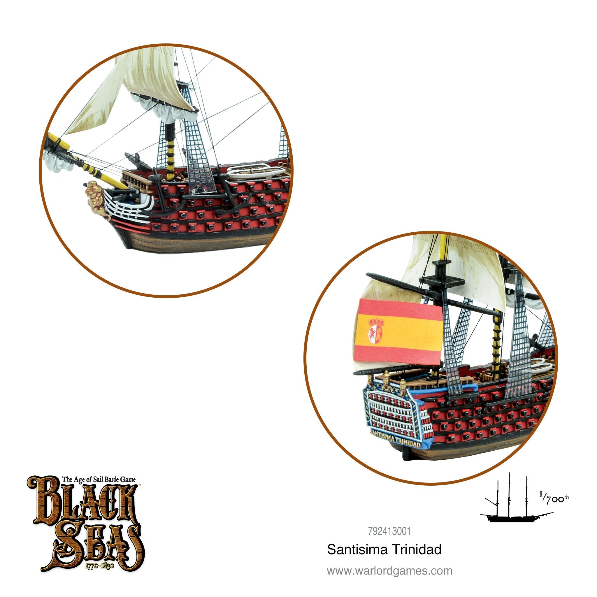 The vast bulk of the Santisima Trinidad is alluded to with its special rules in Black Seas - she is only ever able to make a single change of direction during her activation. She also requires a successful skill test to be able to travel at full sails.