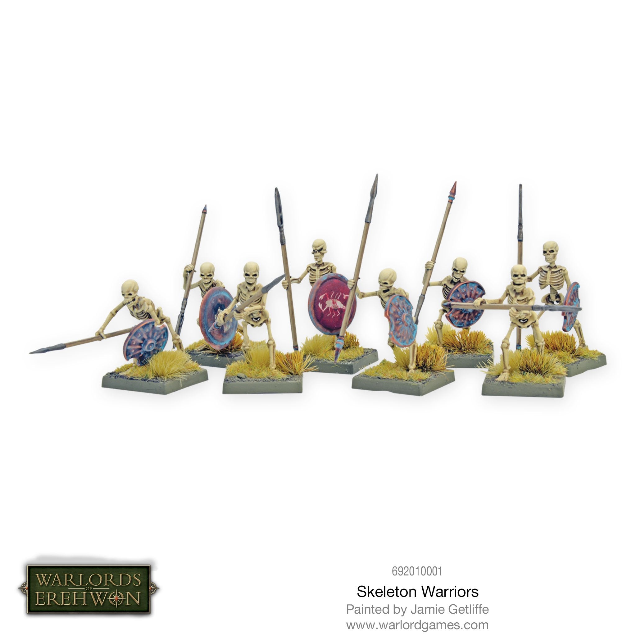 Skeleton troopers can be insubstantial spectral creatures if we wish our forces to represent the spirits or essences of long-dead warriors rather than their material remnants. Skeleton warriors can be armed with swords or spears, others wield bows or crossbows, or ride skeletal steeds or chariots drawn by the same.