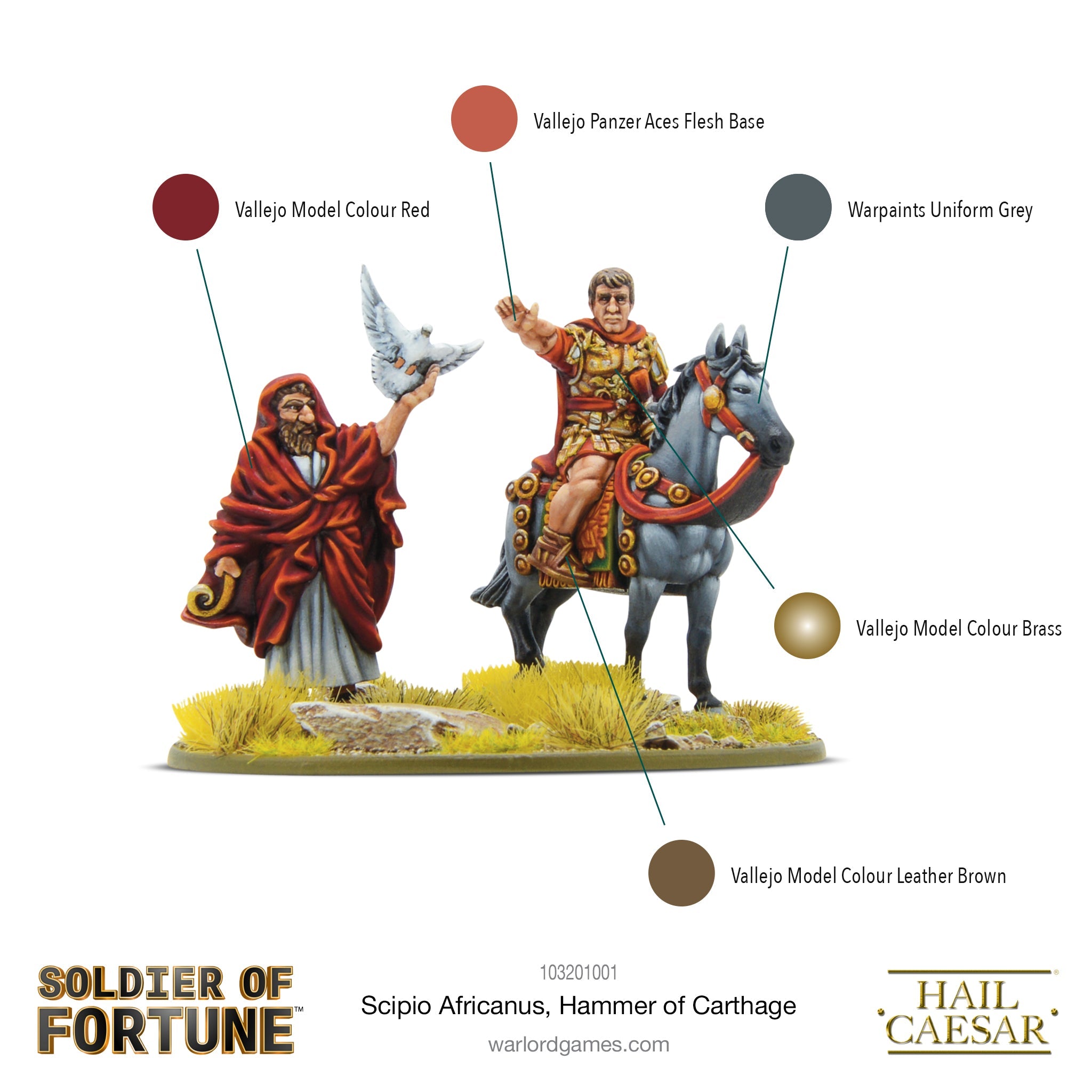 Scipio Africanus was set apart from his contemporaries by his ability to inspire his men to astounding feats of combat against seemingly insurmountable odds, and our new Soldier of Fortune figure is equally inspiring, packed with exquisite detail. Depicting Scipio astride a fine steed, ornately saddled, and looking suitably resplendent in fine armour, he is accompanied by an attendant bearing a dove taking flight, a longstanding symbol of the soul in ancient Roman culture. Both figures are sure to take pride of place in your miniatures collection, or at the centre of a 28mm Republican Roman army!