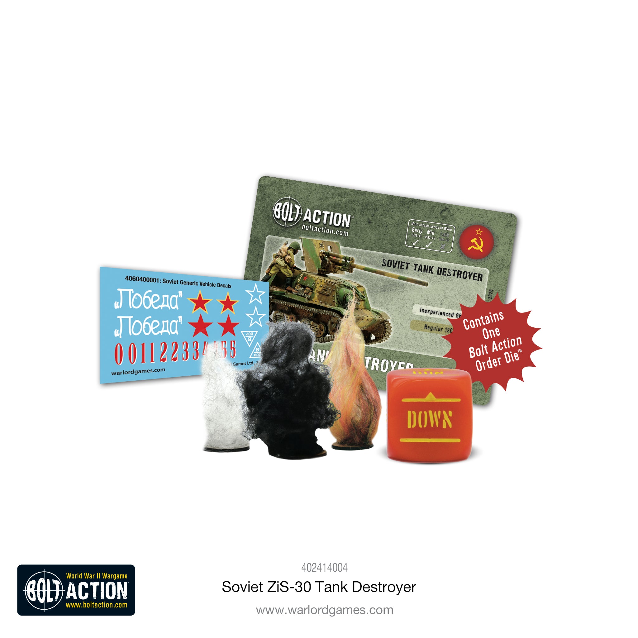 Contains one resin and metal self-propelled gun, Bolt Action stat card, vehicle damage markers, full colour waterslide decals, Bolt Action order die.