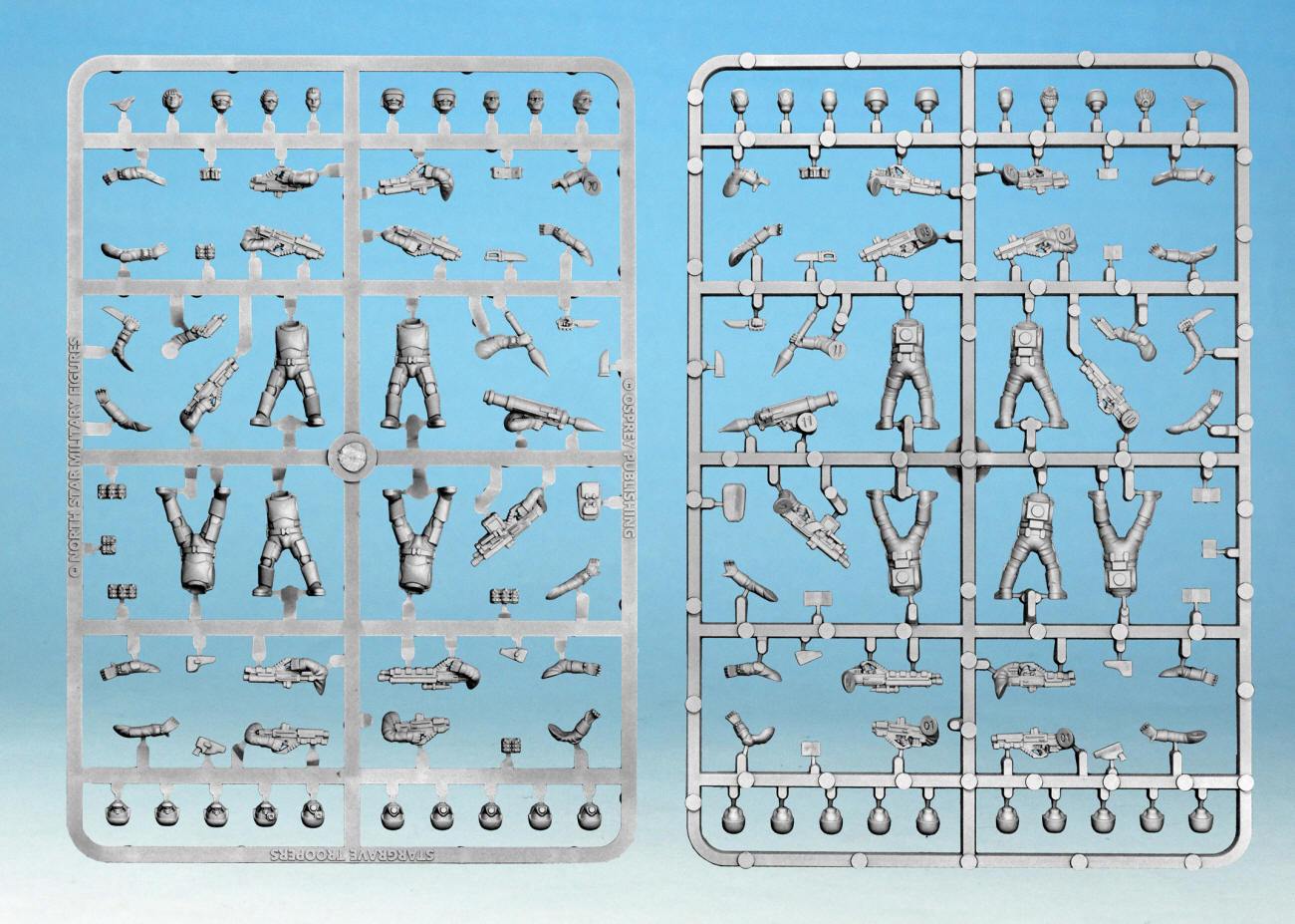 This boxed set offers enough parts to build 20 heavily equipped characters for Stargrave, ideal for use in independent crews or as members of the pirate fleets hunting them down. While this kit includes a range of weaponry and a mix of helmeted and bare heads, even more variety can be achieved by mixing in components from other Stargrave boxed sets. The bare heads include Male and Female variants.