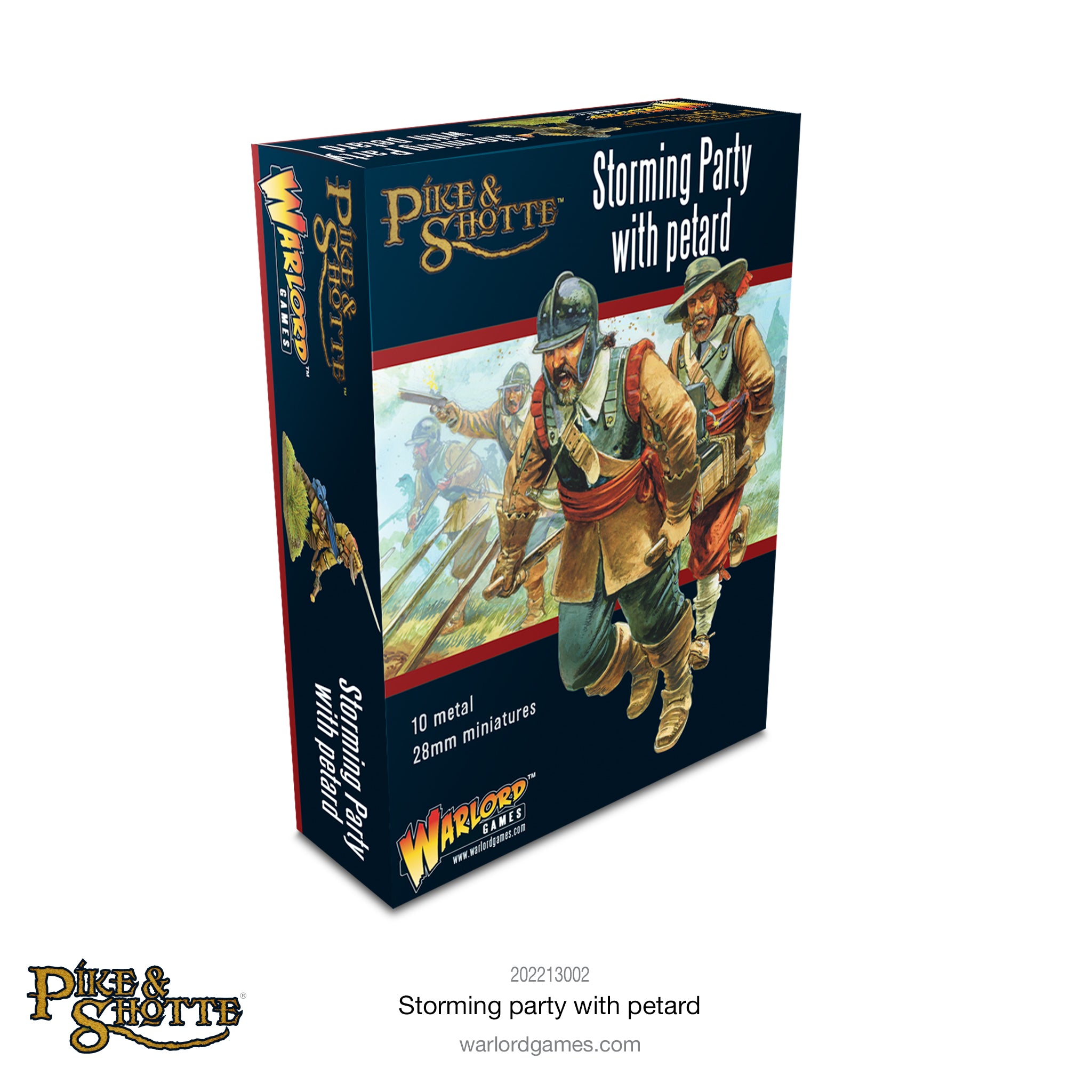 This petard team is accompanied by a troop of dismounted cavalrymen. Clad in stiff buff coats, back and breast armour and helmet, the troopers run forward – as fast as their high cavalry boots will allow. They are well-equipped to take enemy fire, but they are able to dish it out too, most carrying a brace of pistols and a stout sword. The corporals have their carbines to keep the enemy’s heads down, and some have been issued by the Firemaster with grenades – simple hand-hurled bombs that may be as dangerous to the thrower as the enemy!