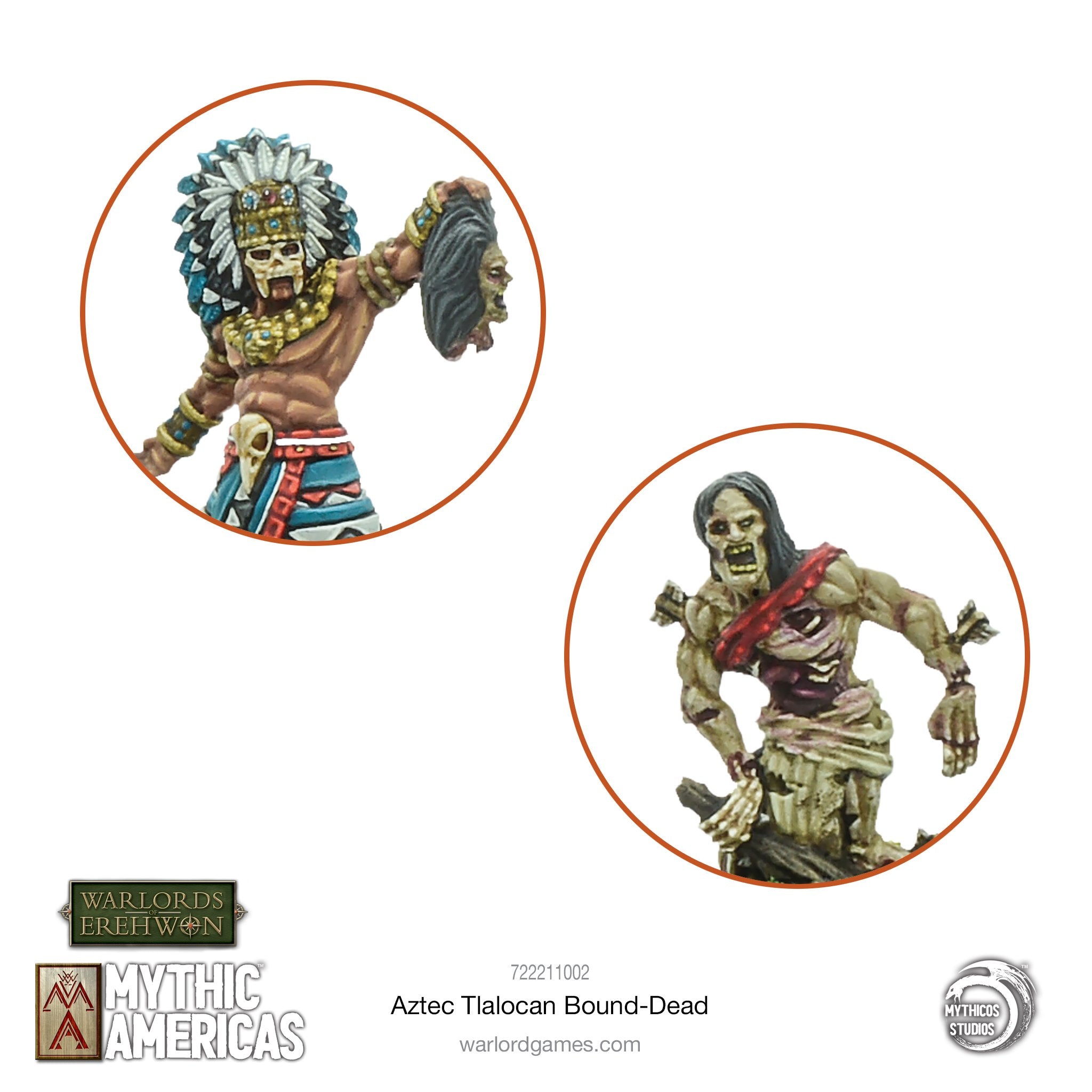 Tlalocan-Bound Dead \tlä-'lō-kən\– The Tlalocan-Bound Dead are the core undead warrior units for the warband. With no real weapons and lackluster stats these undead soldiers will benefit greatly from buff spells. When benefiting from Power Siphon the standard Bound Dead unit become powerful attackers or a hardy objective holder when enhanced with the Armor of the Gods.