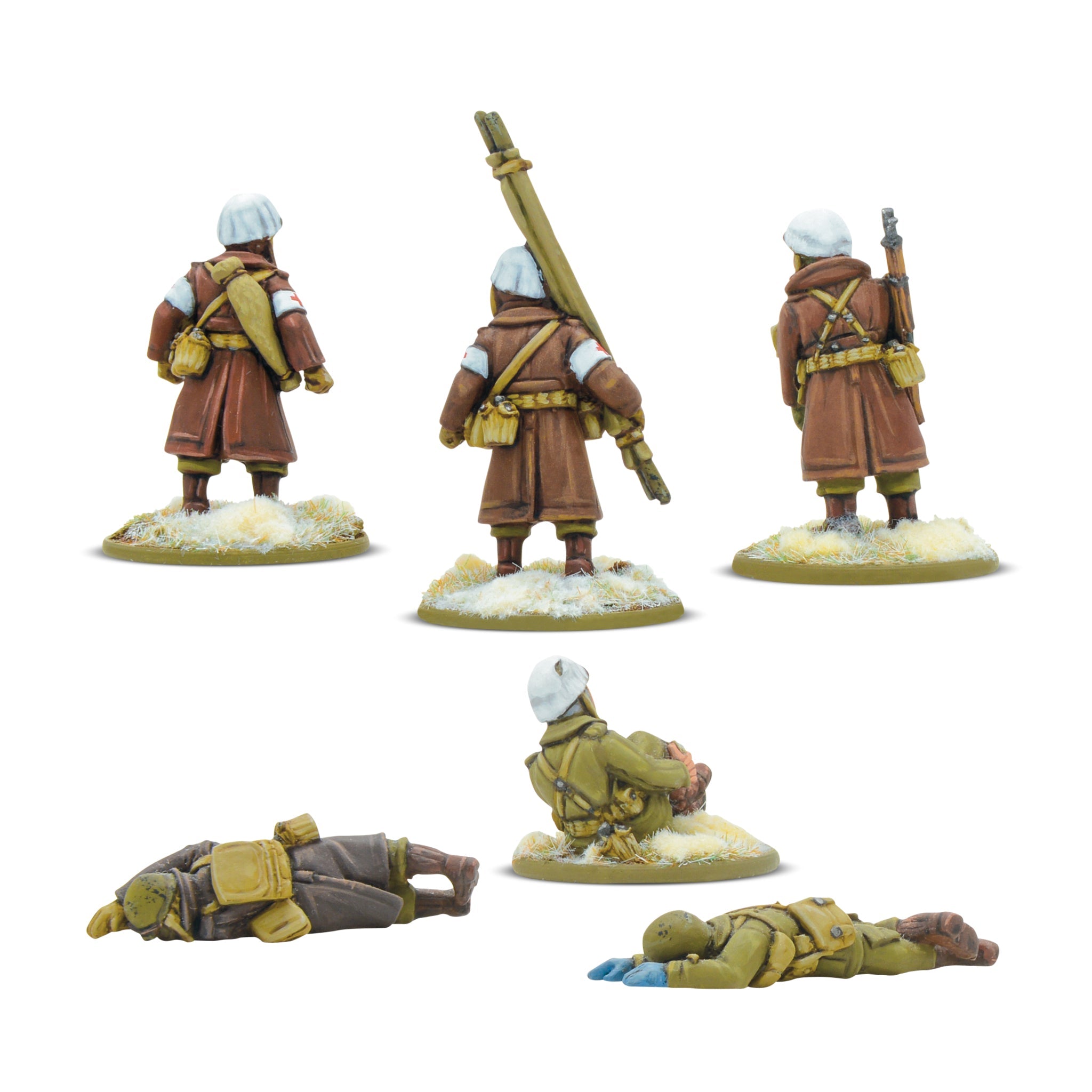 This set makes a fantastic Medic team for any winter US Army Rifle Platoon, as well as adding great character to your collection. The stretcher team is perfect for representing the Medic himself, while the casualty figures make fantastic additions to any infantry squad, and can see service as table dressing, or on scenic bases or pin markers! In their warm winter kit, they’re perfect for the Battle of the Bulge and other cold climes, making them ideal for any late-war American force.