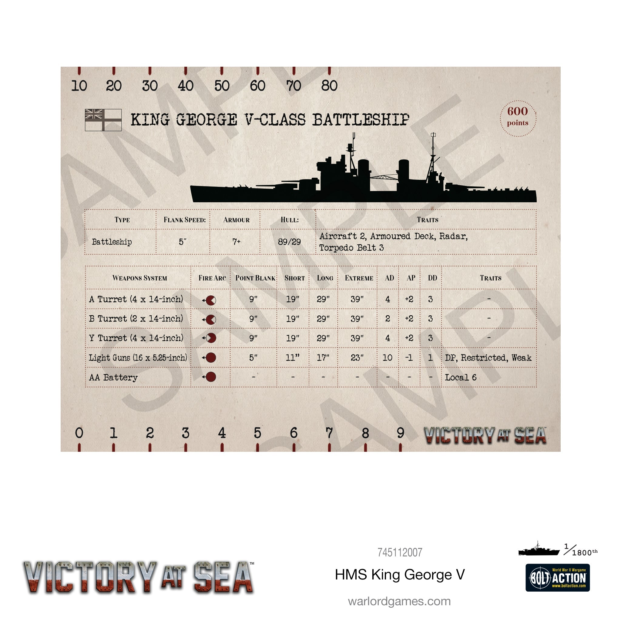Built to defend Britain in the war that was clearly coming, the King George V-class of battleships compromised their main armaments, which were reduced to 14-inch guns, to fulfil treaty obligations. However, by mounting ten of them, HMS King George V could pack a fearsome punch. It was also very fast for such a well armoured ship. The King George V served successfully in many campaigns, including the sinking of the Bismarck, the invasions of Sicily and Italy and finished the war in the Pacific fleet.